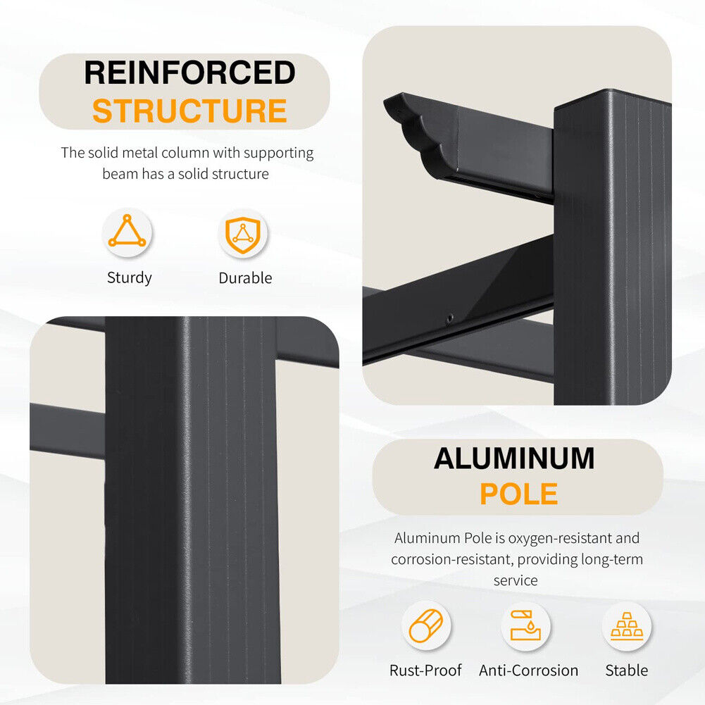 3m Aluminium Garden Shade Pergola Gazebo Awning Sunshelter Retractable Canopy UK