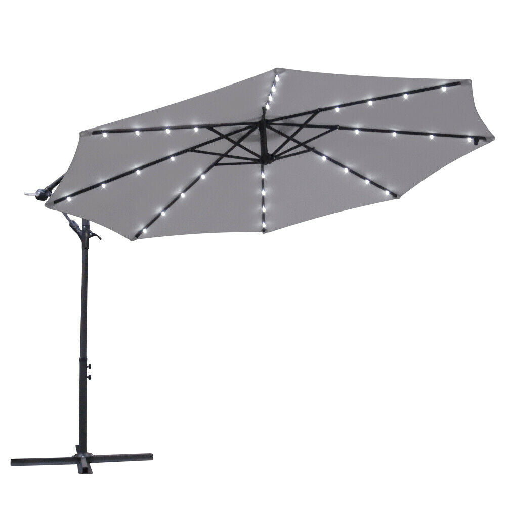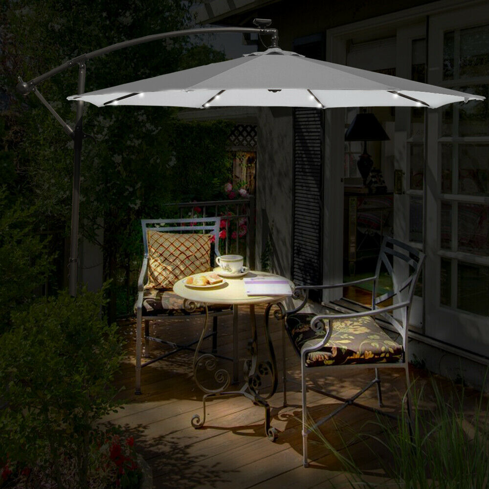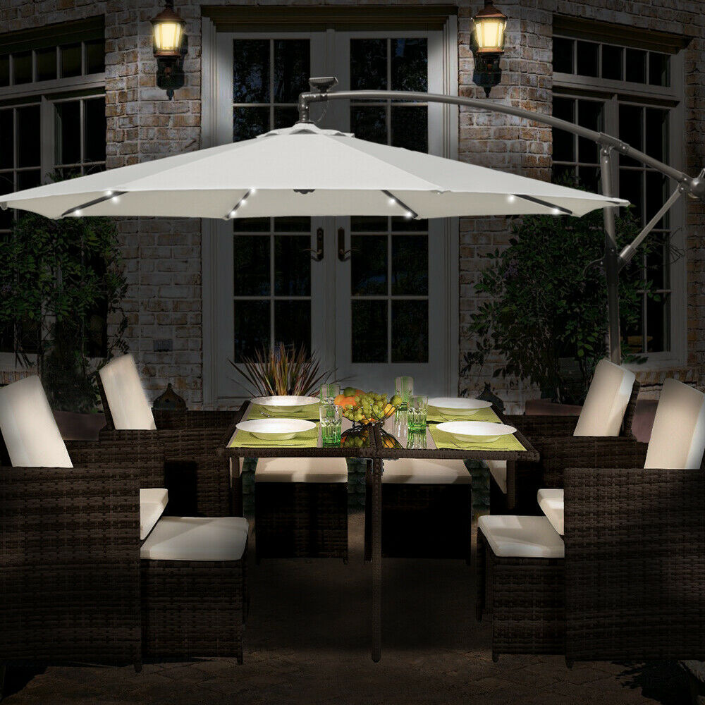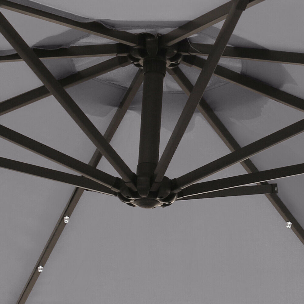 3m Garden Hanging Parasol Sun Shade Patio Banana Umbrella Cantilever with 32 LED