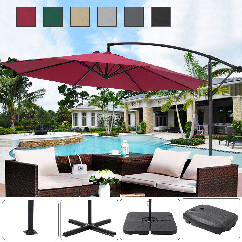 3M Garden Parasol Outdoor Sun Shade Hanging Banana Umbrella Cantilever with Base