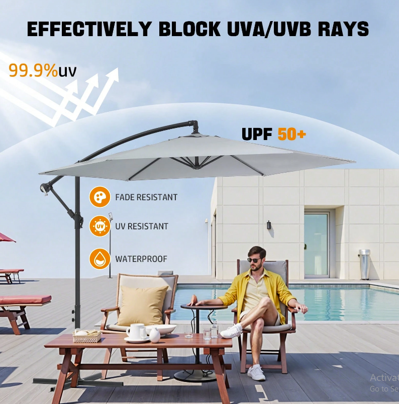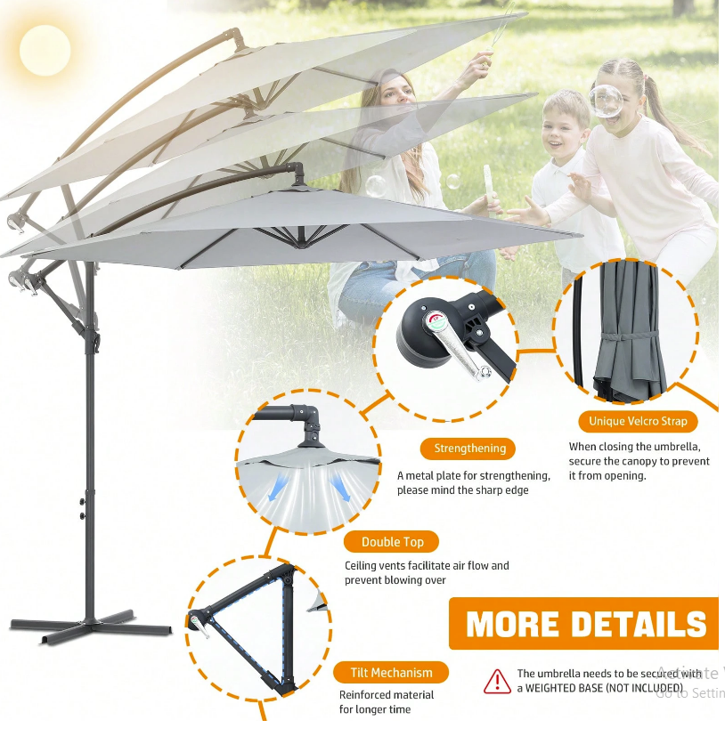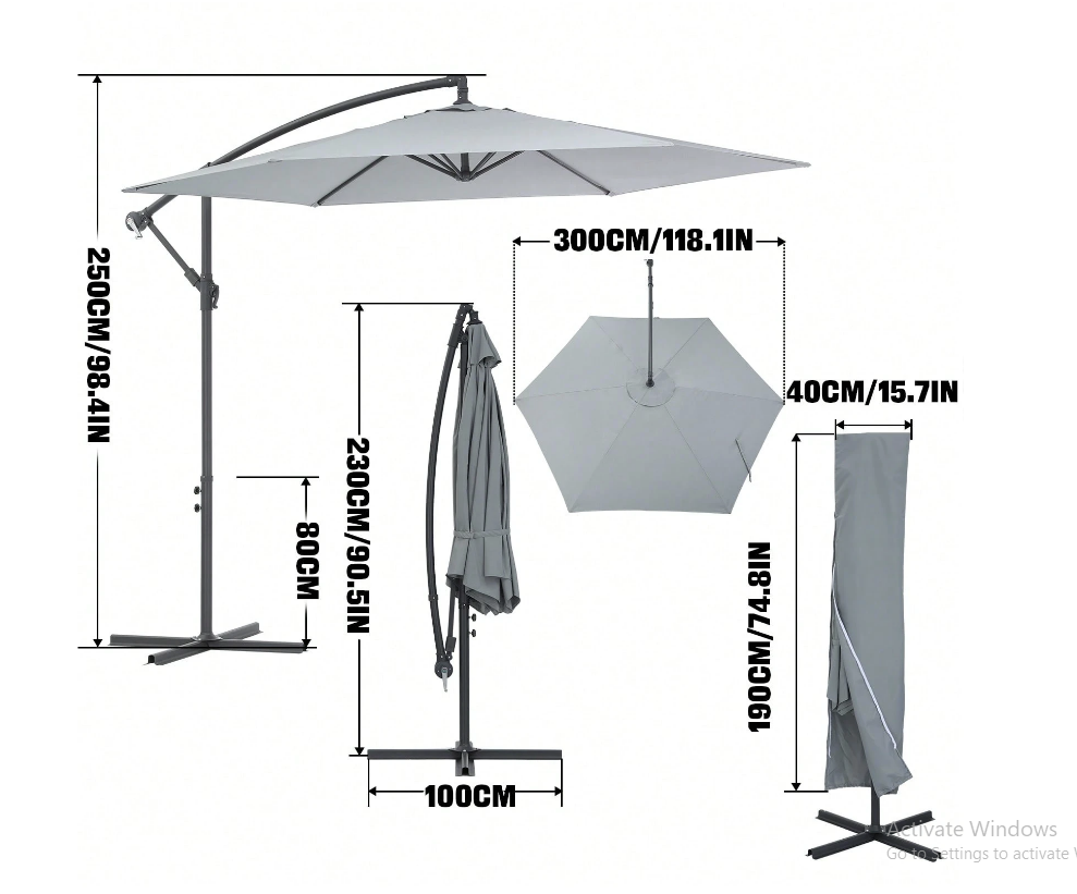 3m Garden Parasol Sun Shade Patio Banana Hanging Set Umbrella Cantilever