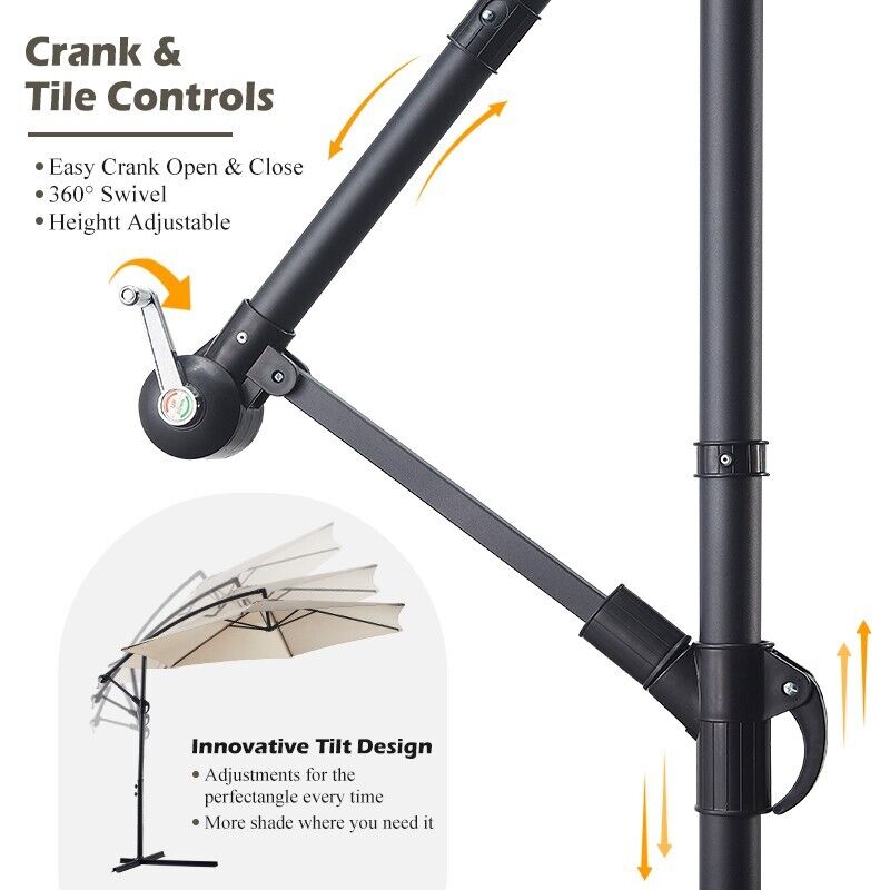 3M Garden Sun Parasol Umbrella Adjustable Cream Round Top Outdoor