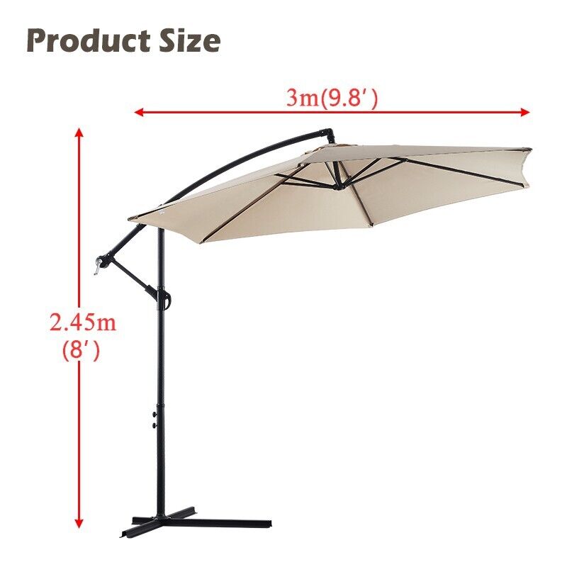 3M Garden Sun Parasol Umbrella Adjustable Cream Round Top Outdoor