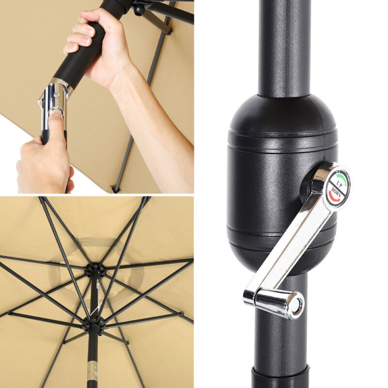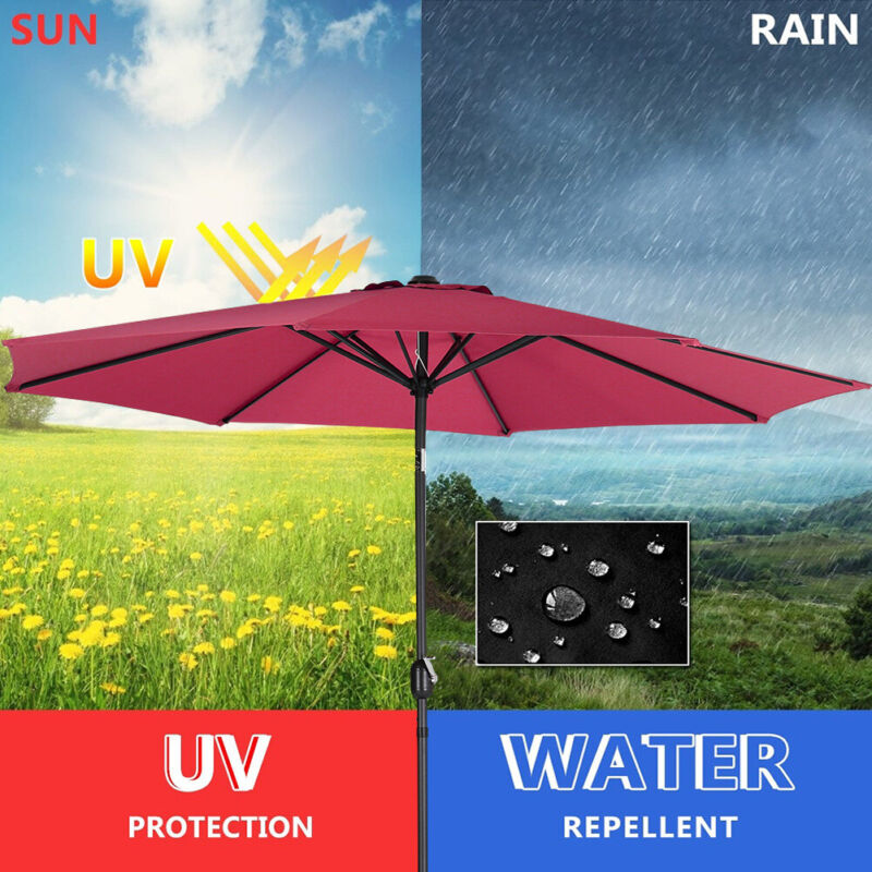 3m Outdoor Patio Parasol Garden Umbrella Crank Tilt Sun Shade Canopy with Base