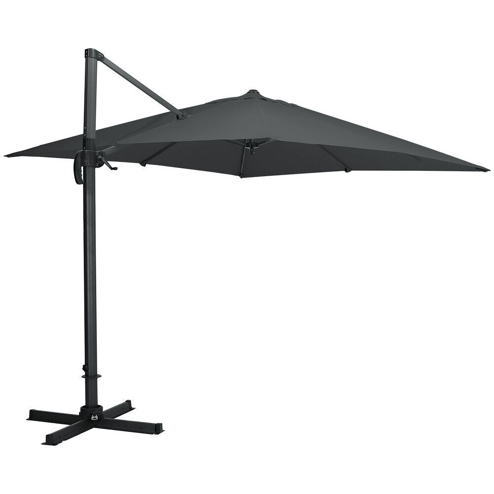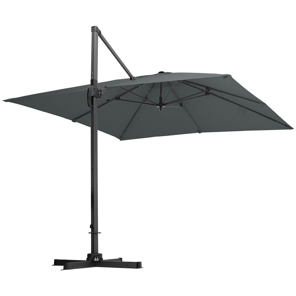 3M Sun Rotating Umbrella Garden Banana Parasol Cantilever Canopy Weight Base