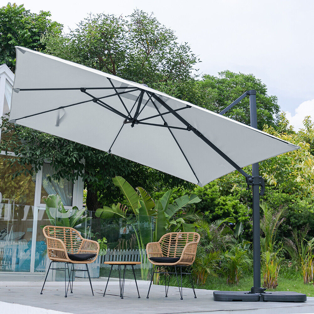 3M Sun Rotating Umbrella Garden Banana Parasol Cantilever Canopy Weight Base