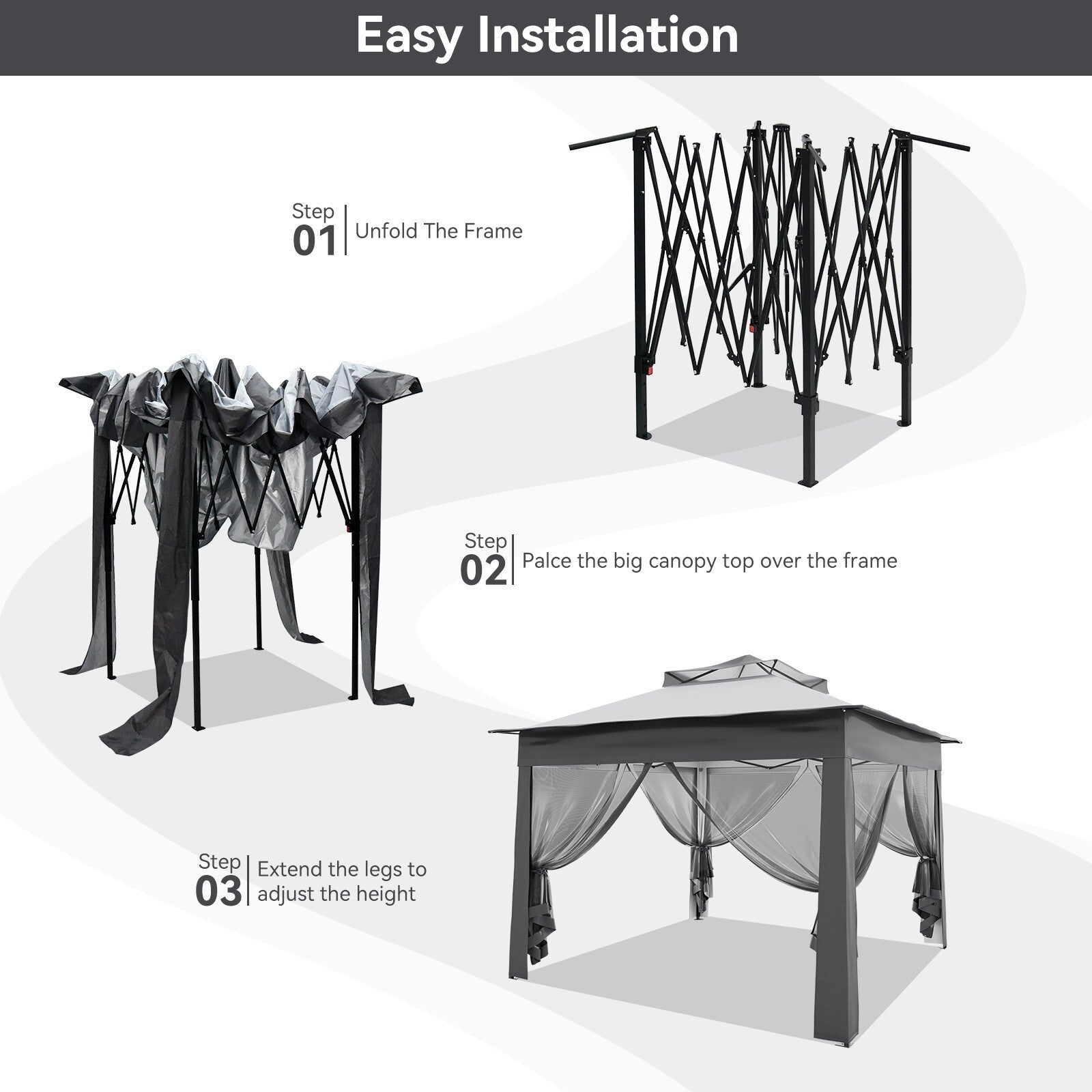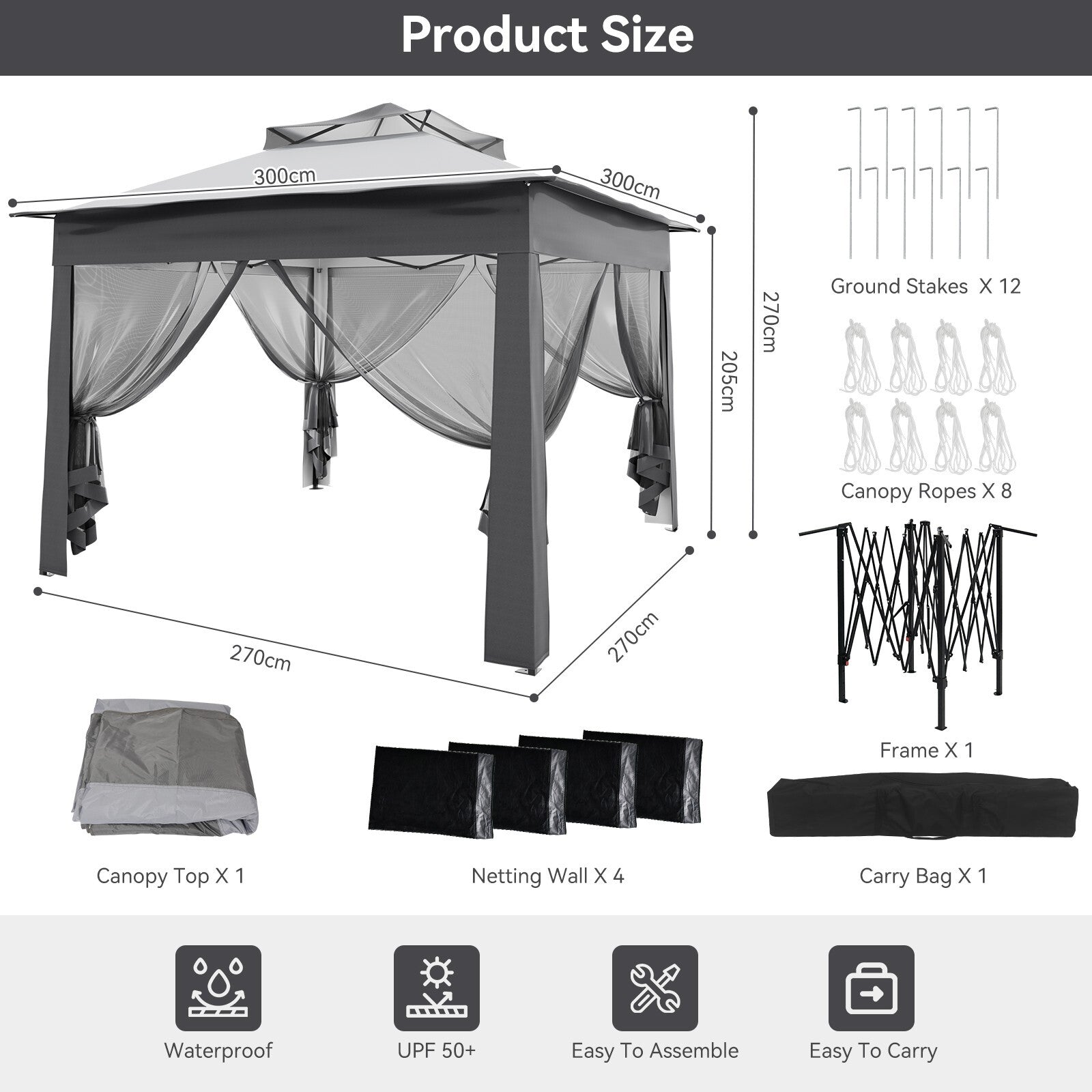 3m x 3m Pop Up Garden Gazebo Tent Heavy Duty Waterproof UV50+ with Mosquito Net