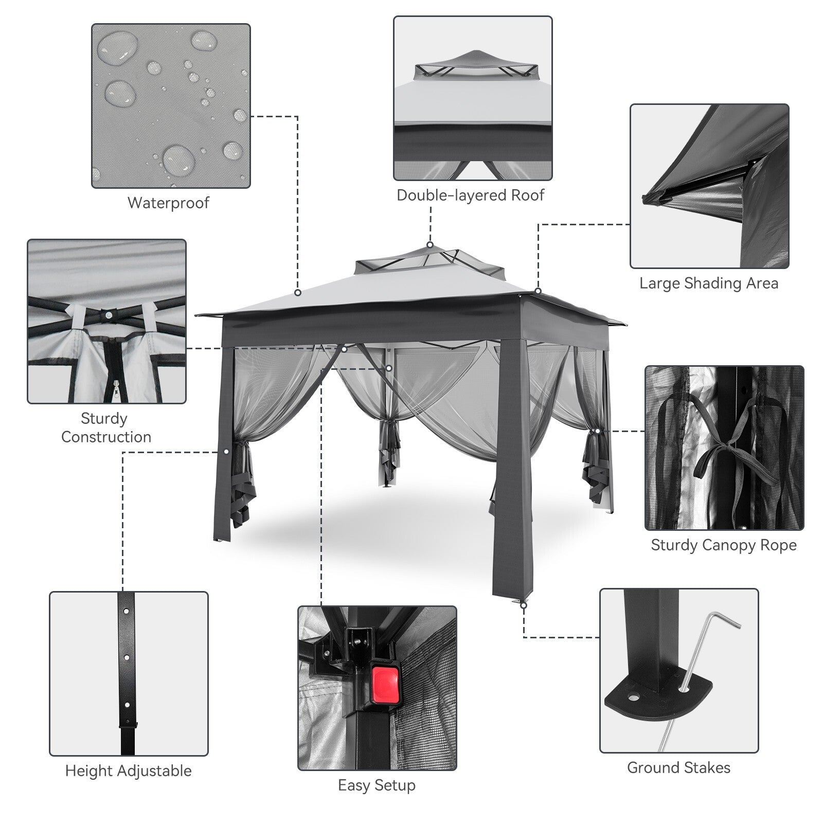Features Adjustable Height, Durable, Foldable, Heavy Duty, Mosquito Netting, Pop-up, UV Protected, Water-Resistant, Waterproof, Weather Resistant