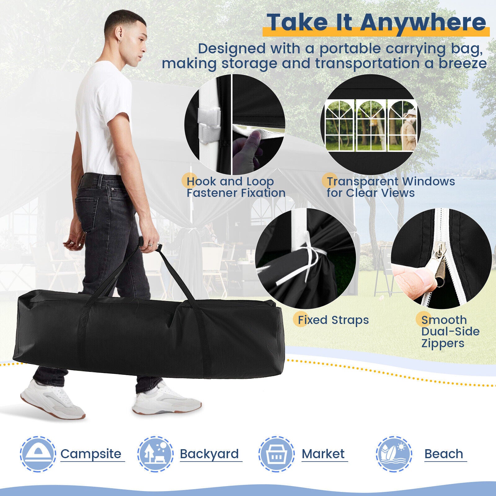 3Mx6M Outdoor Canopy Tent Portable Gazebo Pop up Canopy w/Zippered Entrances