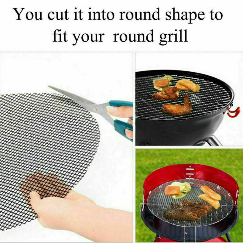 3PC BBQ Grill Mesh Non-Stick Mat Reusable Teflon Sheet Resistant Barbecue Meat