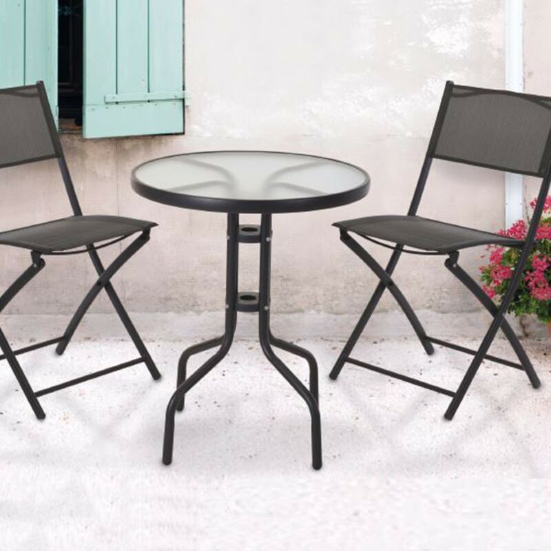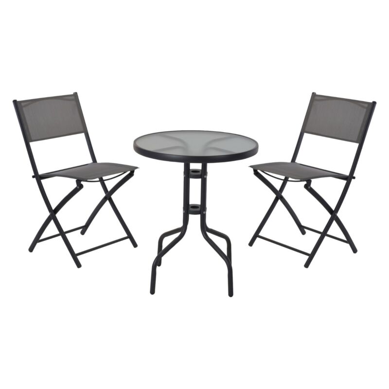 3pc Black Outdoor Garden Metal Folding Table And Chairs Furniture Set Patio