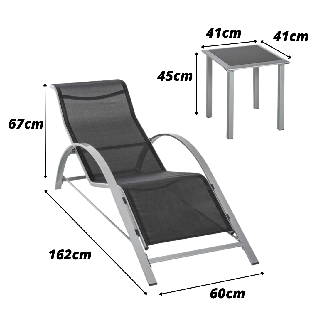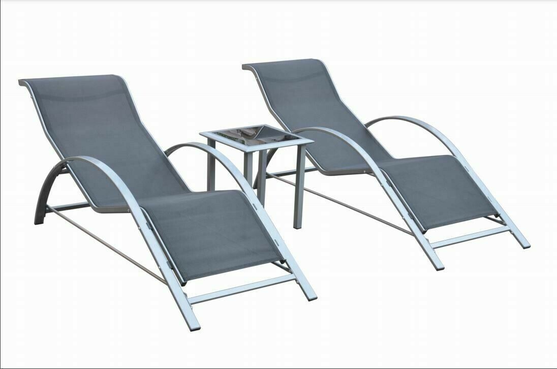 3pc Garden Furniture Table Set Sun Lounger Seats Zero Gravity Reclining