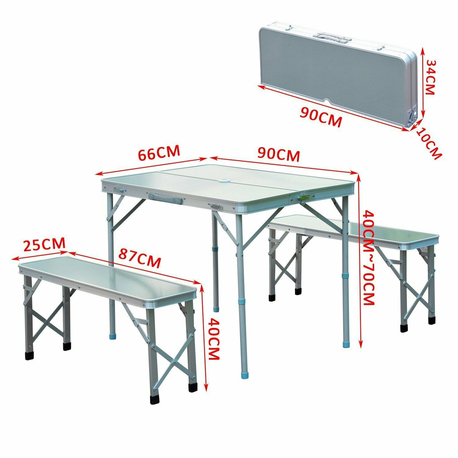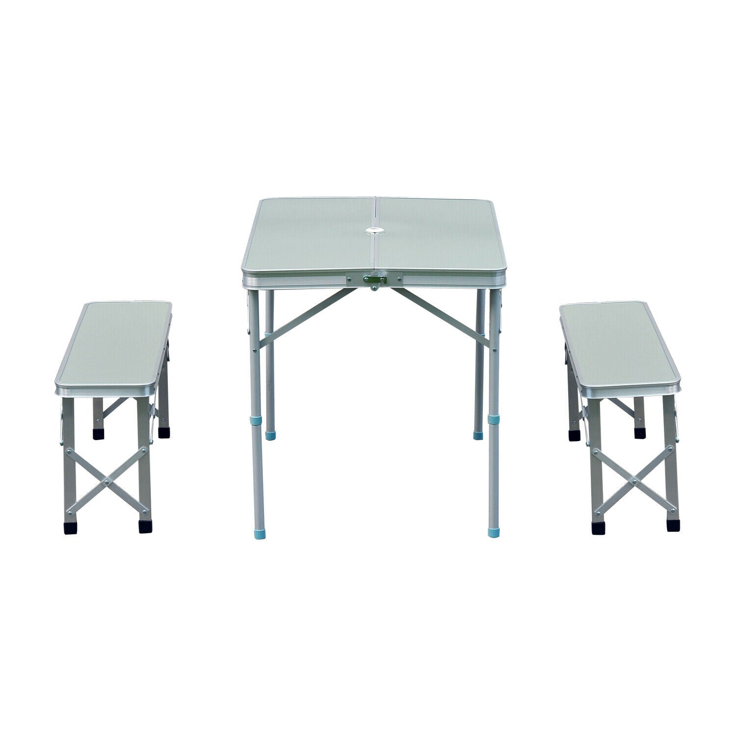 3pc Picnic Table Bench Set Foldable Portable Outdoor Garden BBQ Aluminum Alloy
