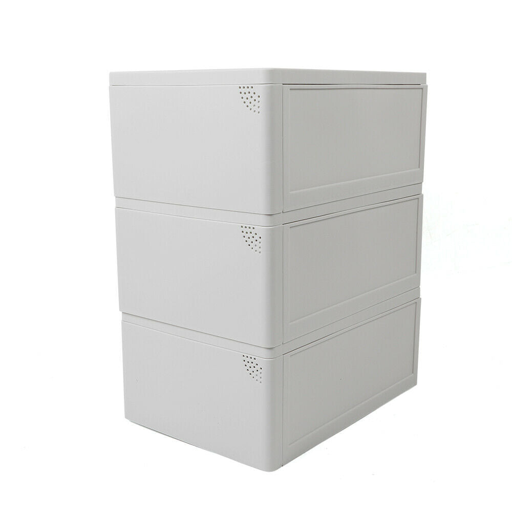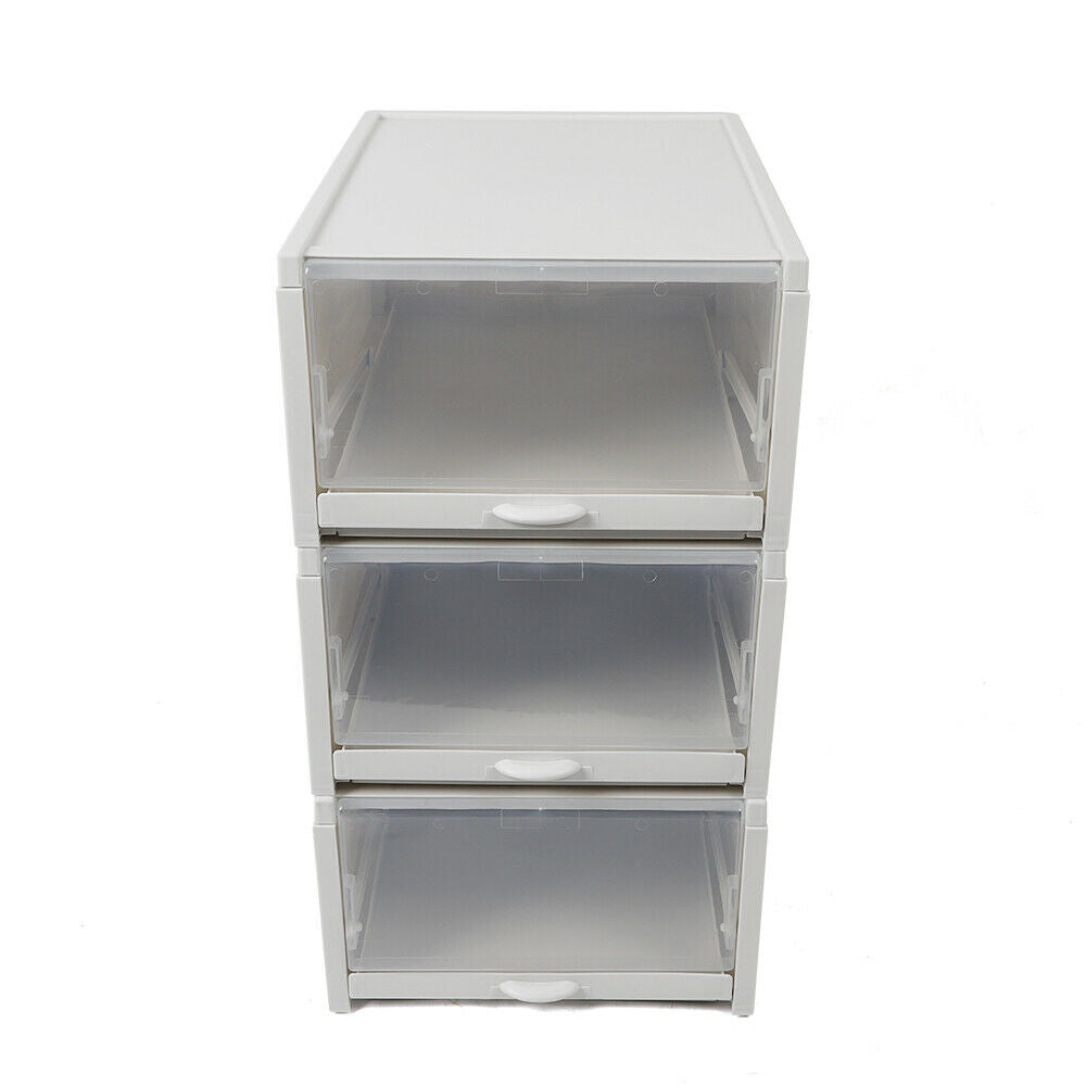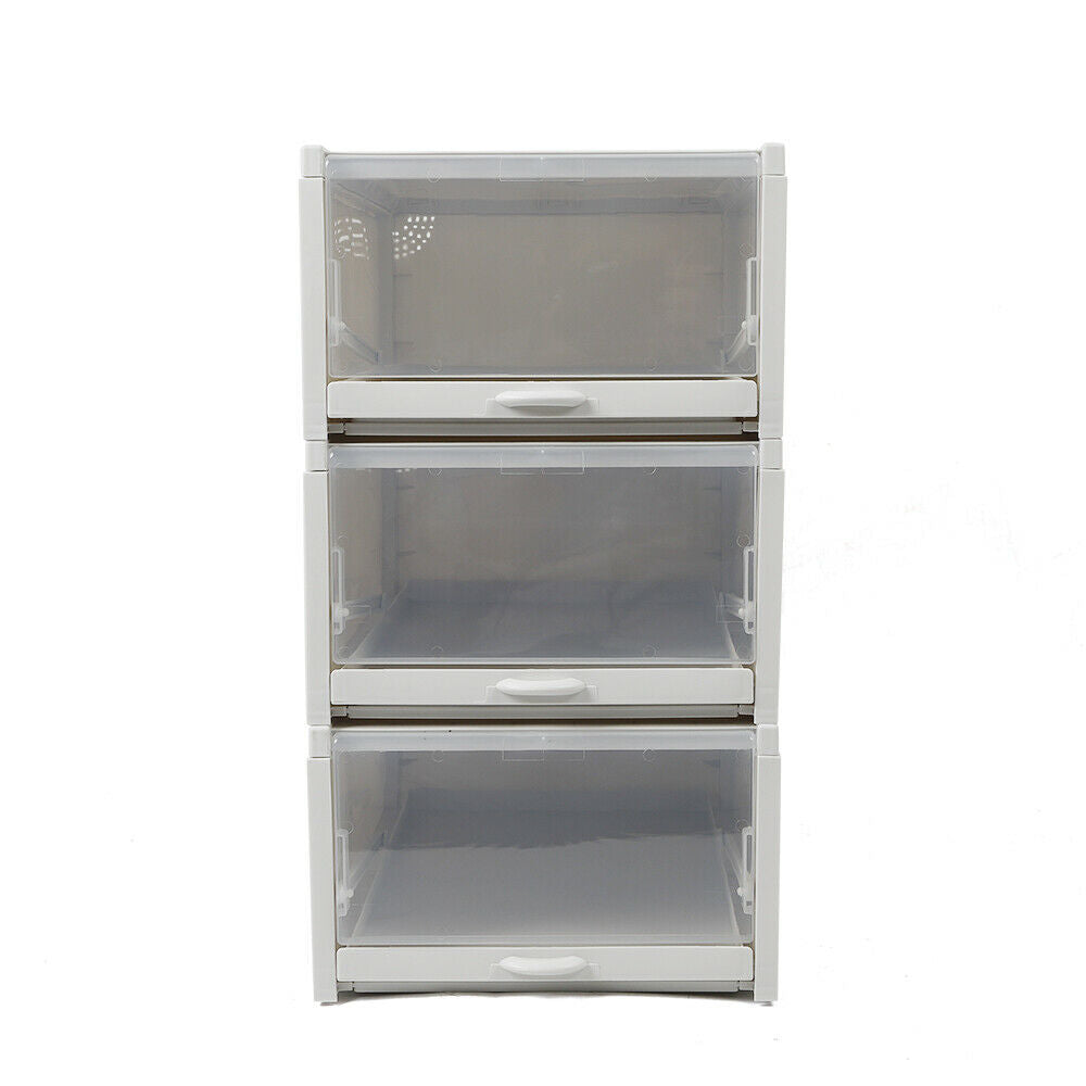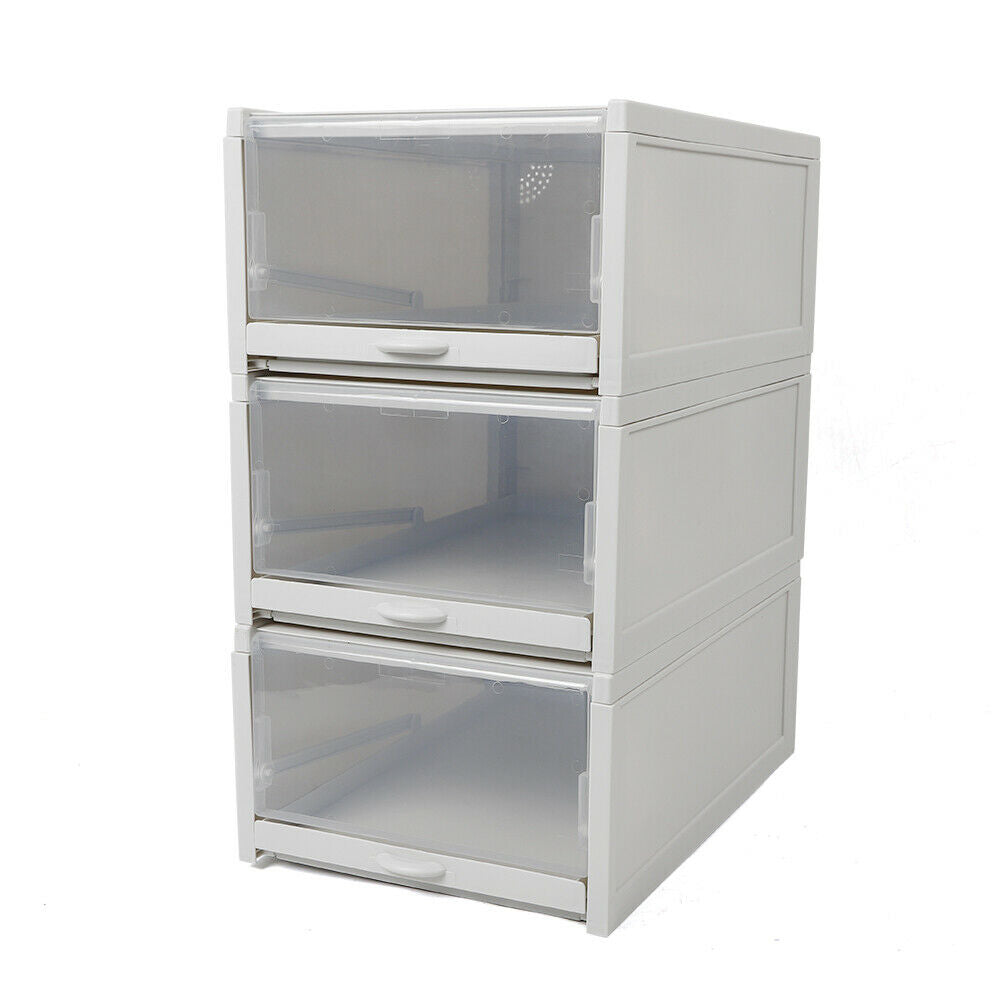 3pc Plastic Shoe Storage Boxes Drawer Stackable Foldable Organiser Clear Gray