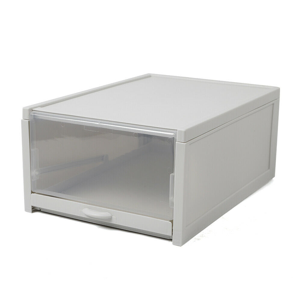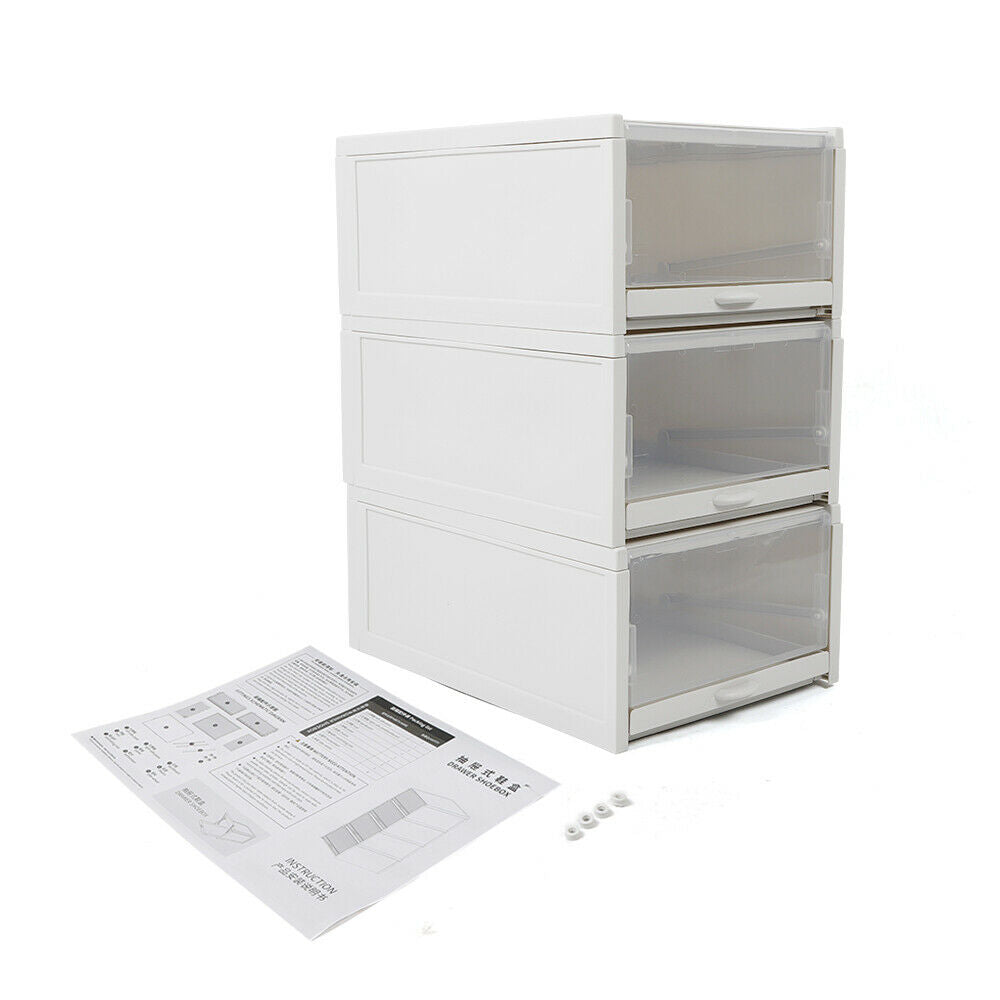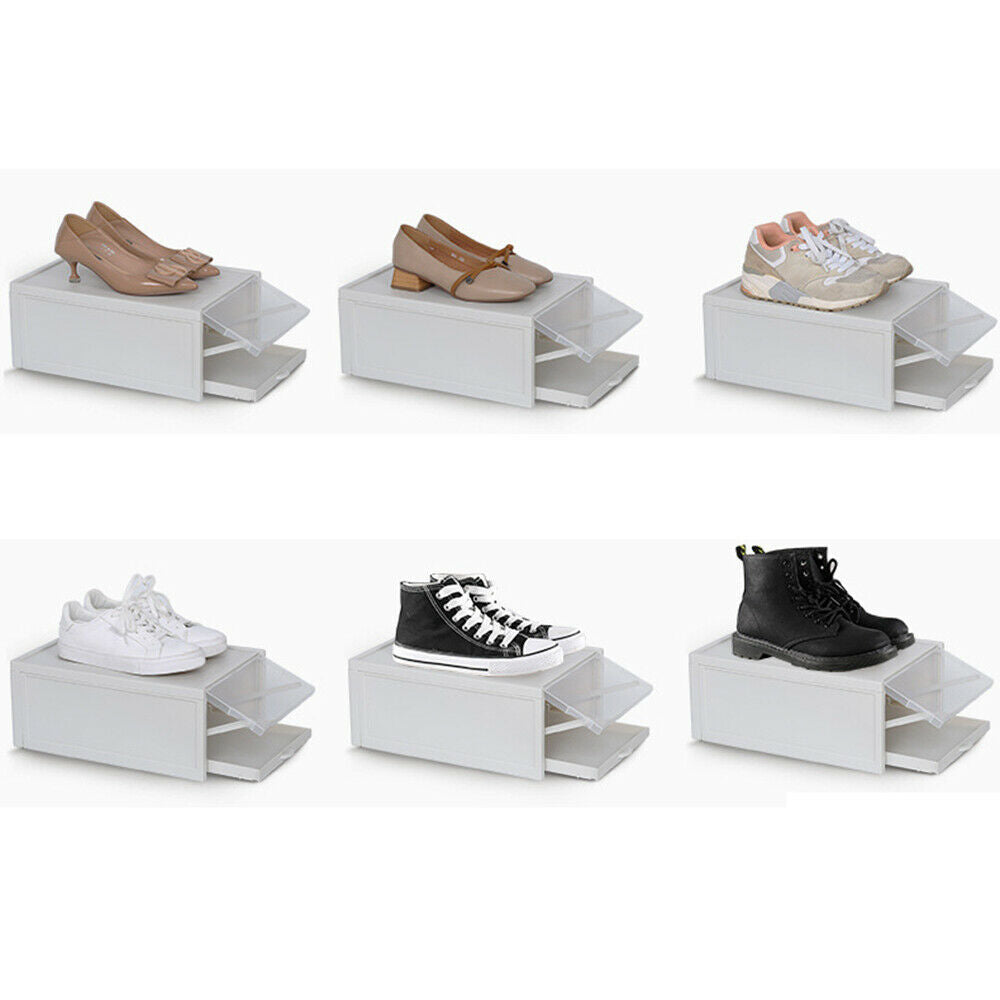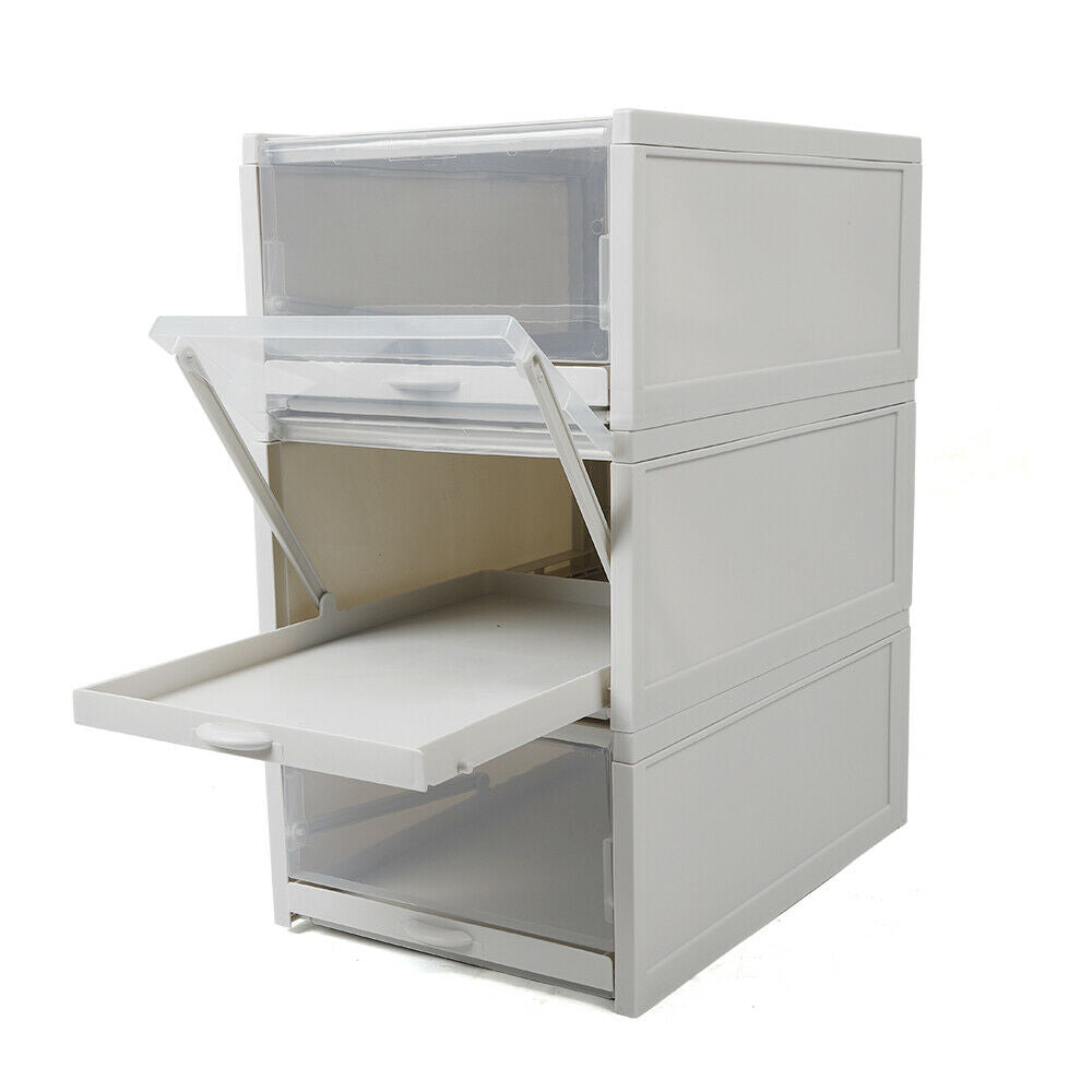 3pc Plastic Shoe Storage Boxes Drawer Stackable Foldable Organiser Clear Gray
