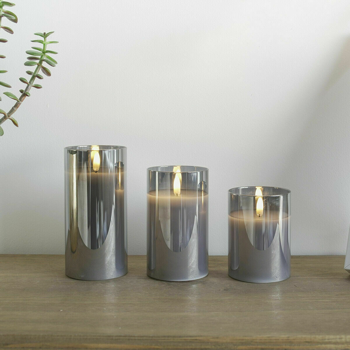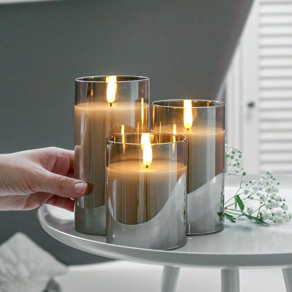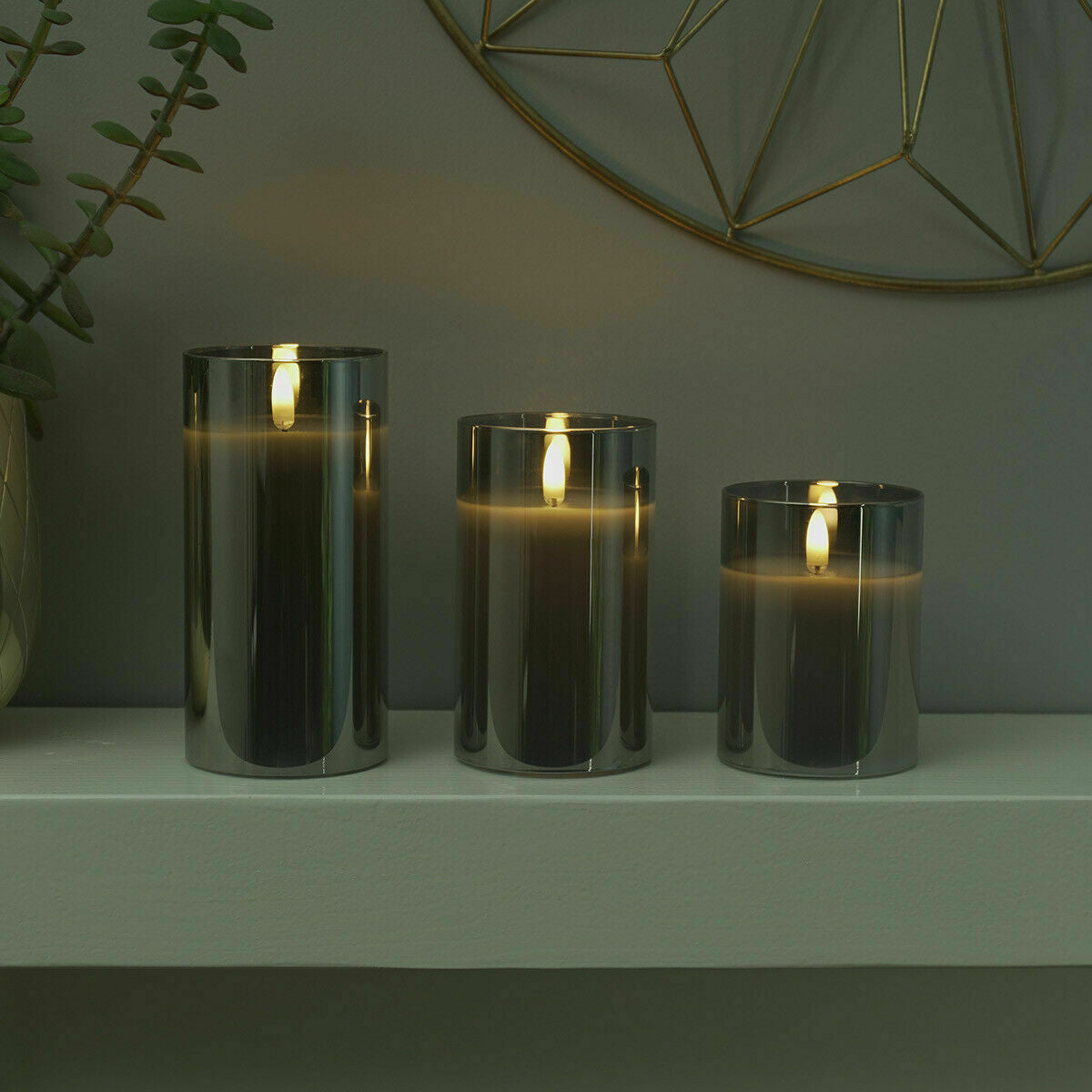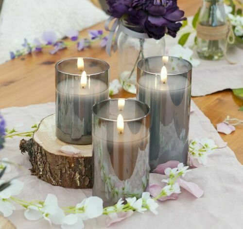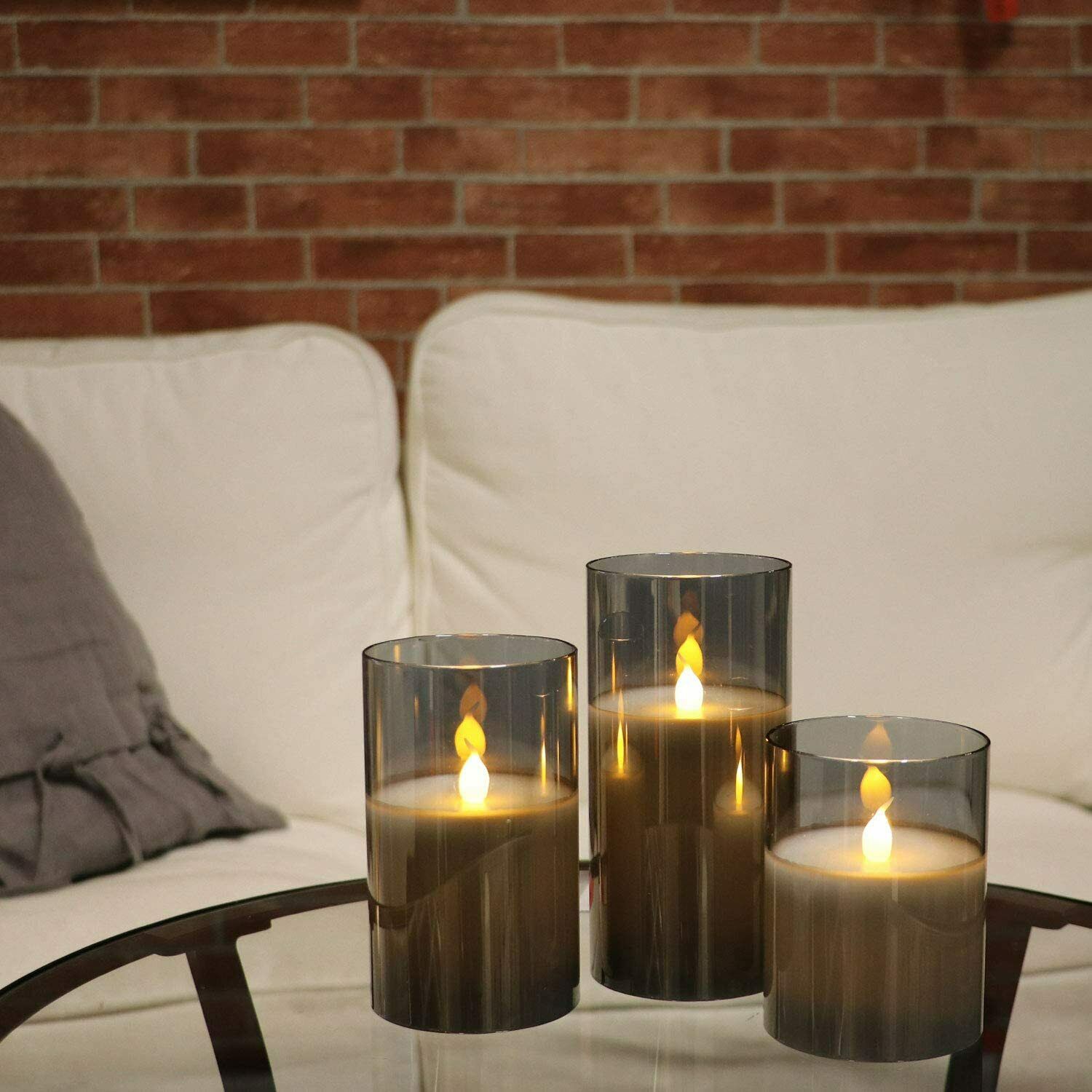3pcs Authentic Flame Battery Flickering LED Candle Lights Glass Jar Wax | Indoor