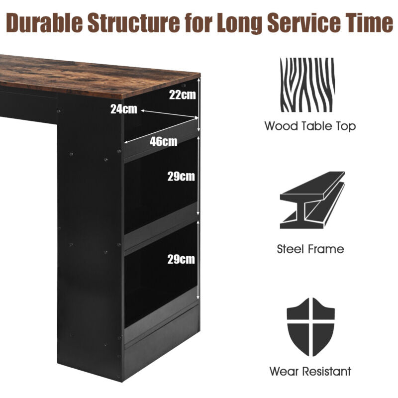 3PCS Bar Table & 2 Chairs Industrial Kitchen Dining Table Set with Side Storage