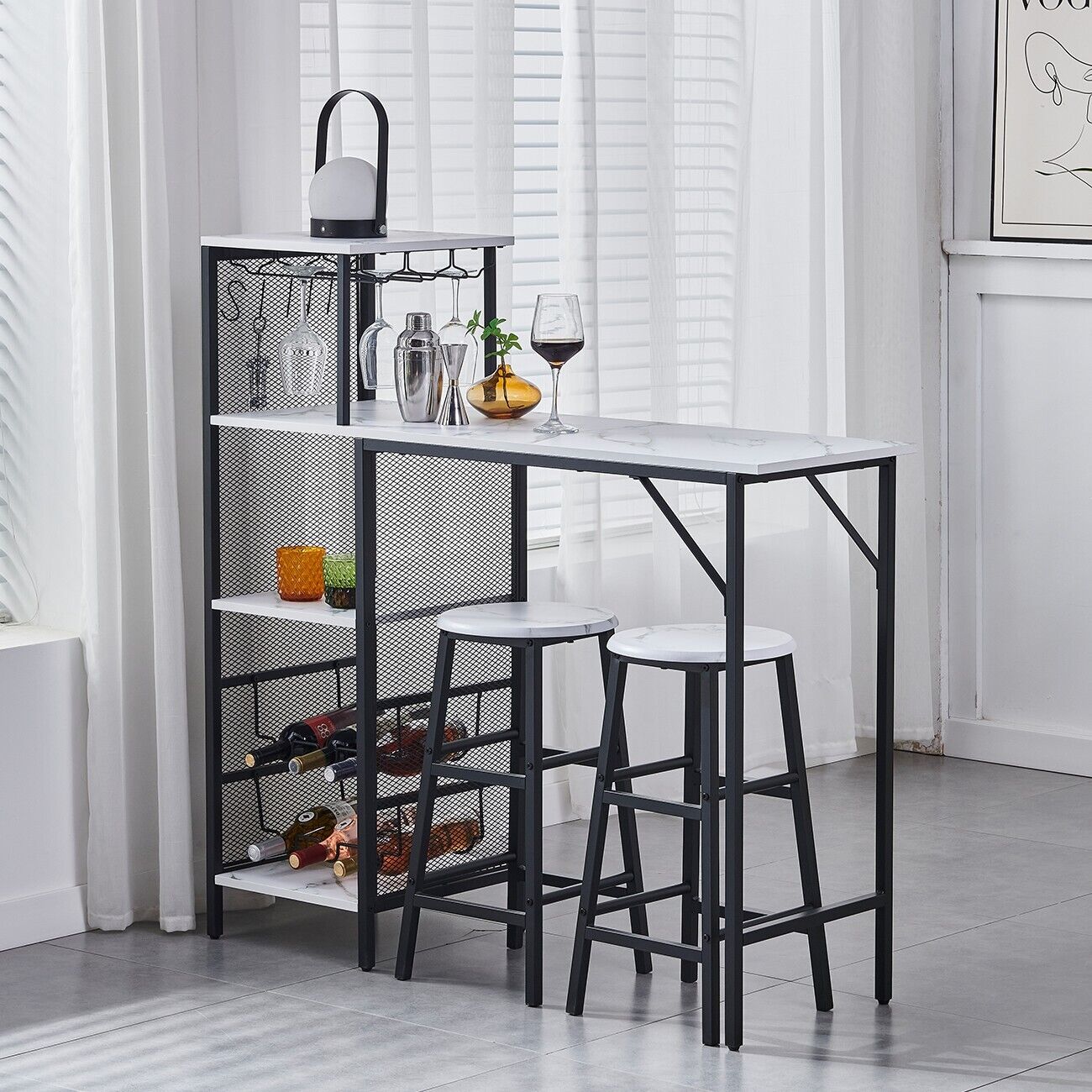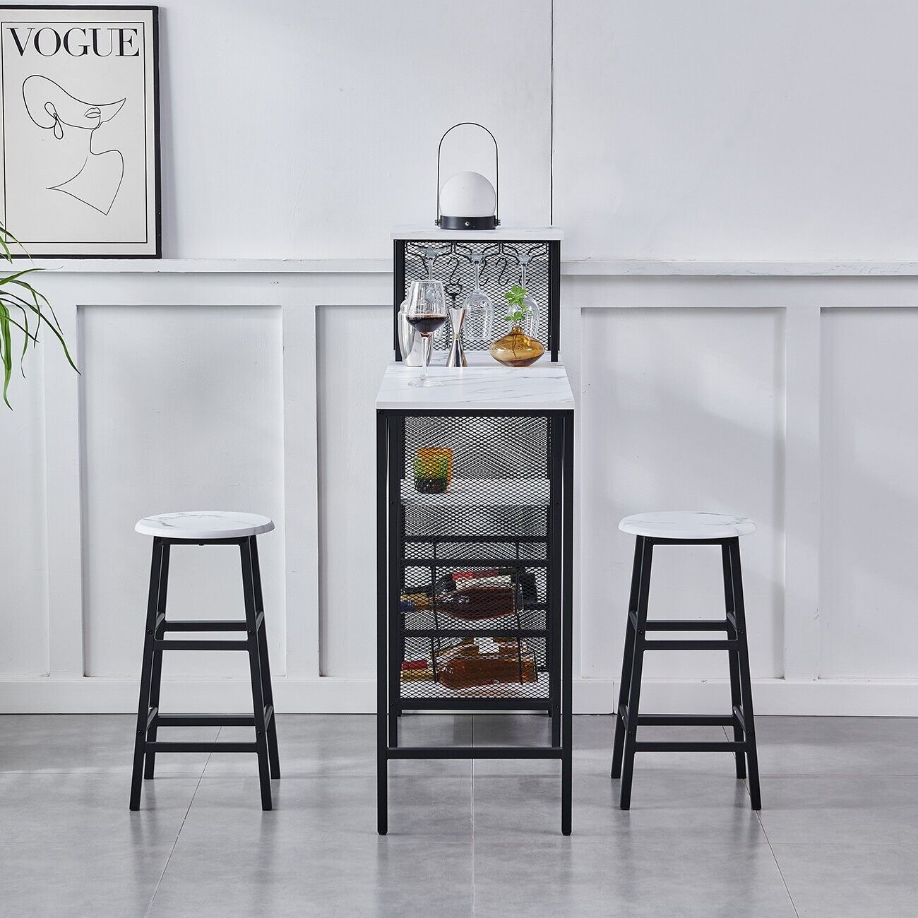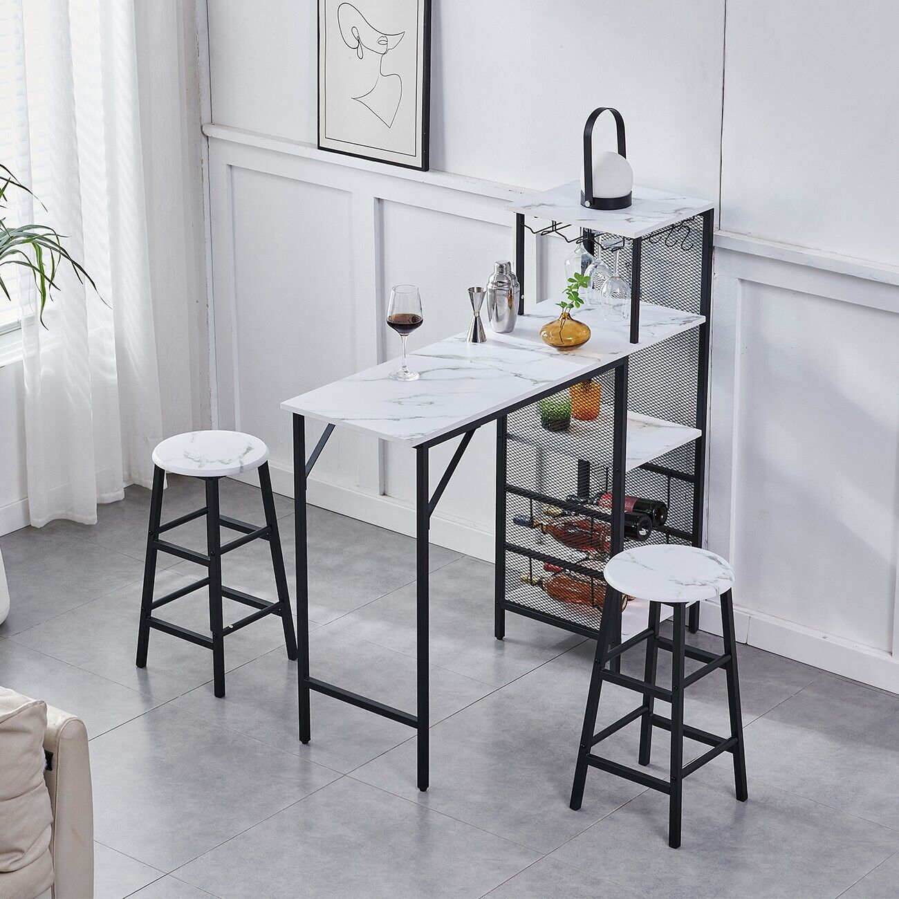 3Pcs Bar Table Stools Set 2 Bar Stools for Breakfast Pub Counter Small Apartment