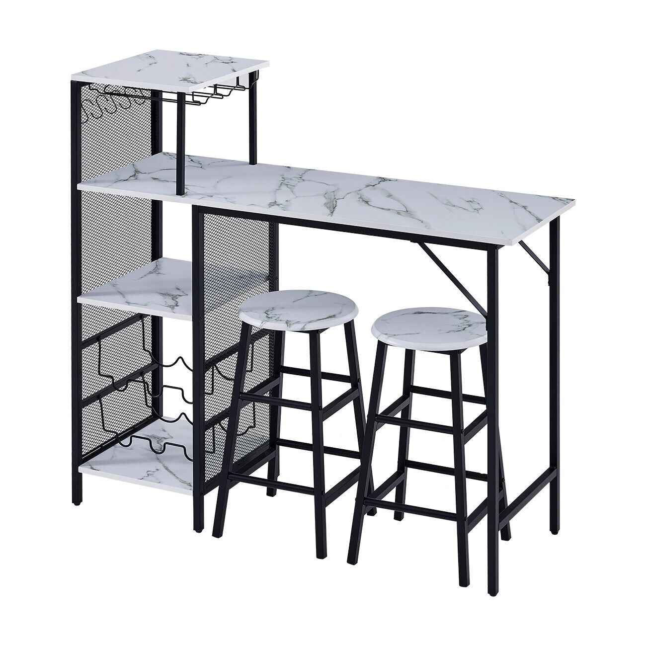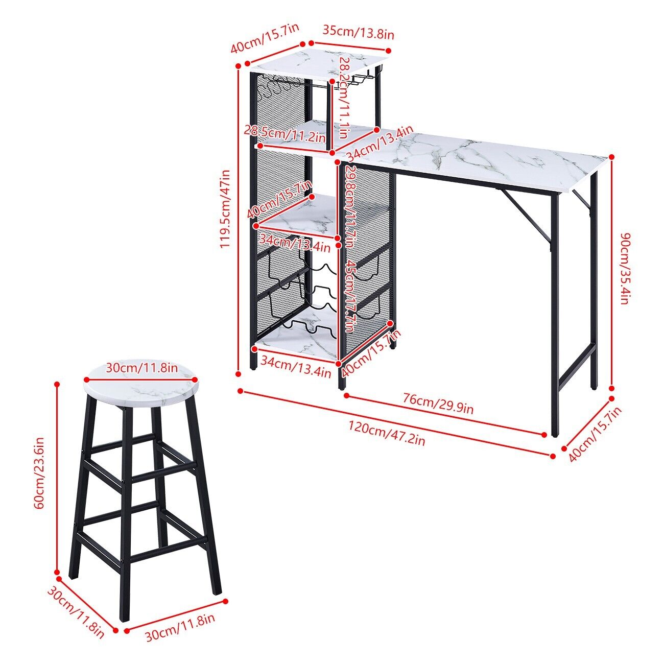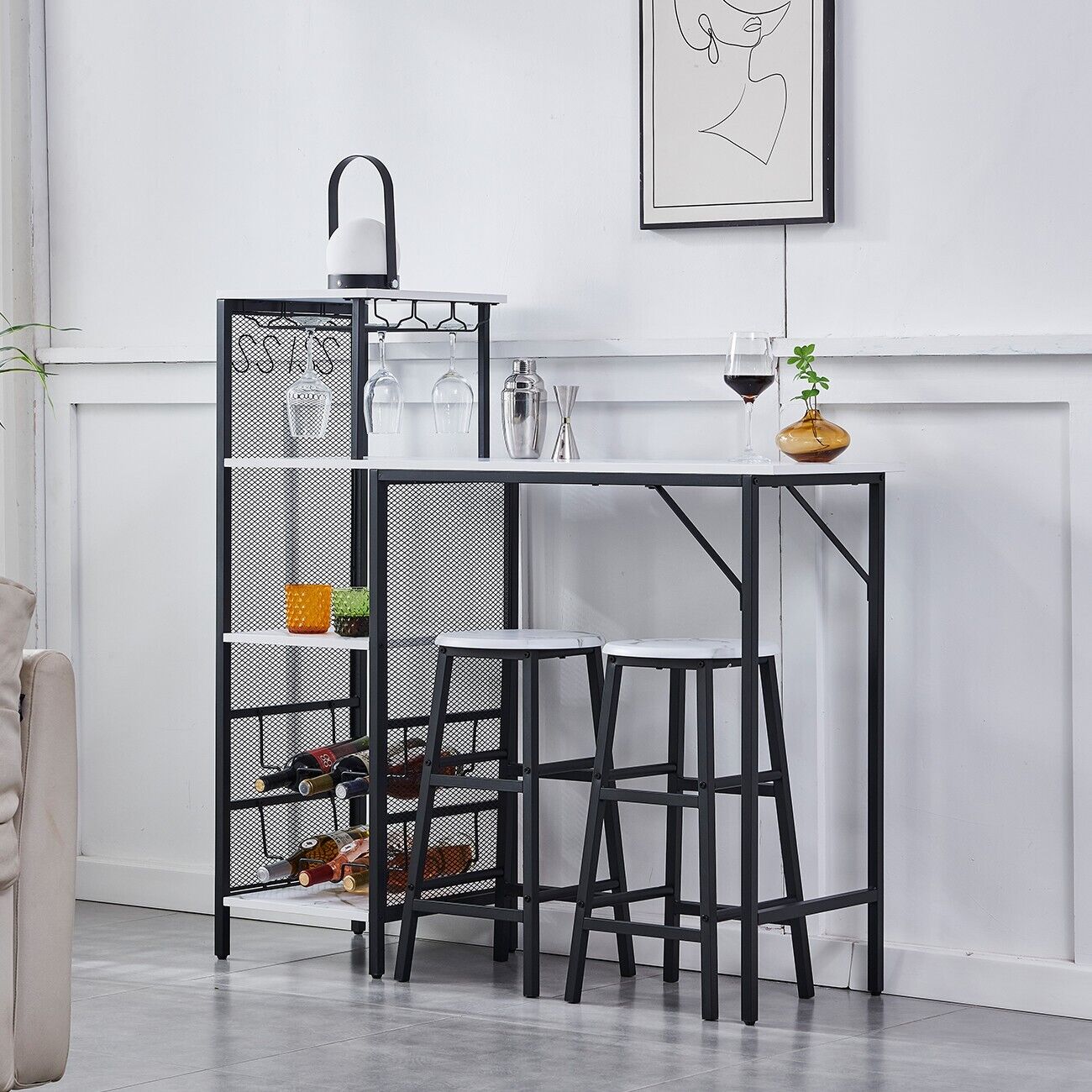 3Pcs Bar Table Stools Set 2 Bar Stools for Breakfast Pub Counter Small Apartment