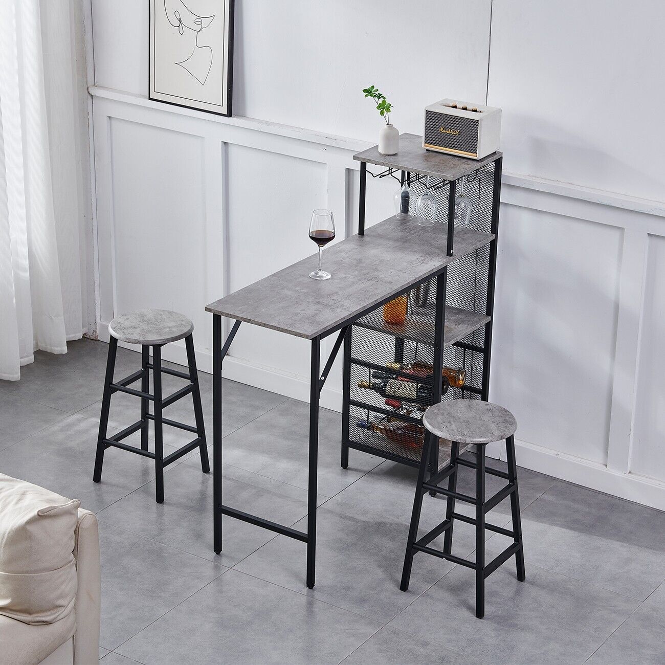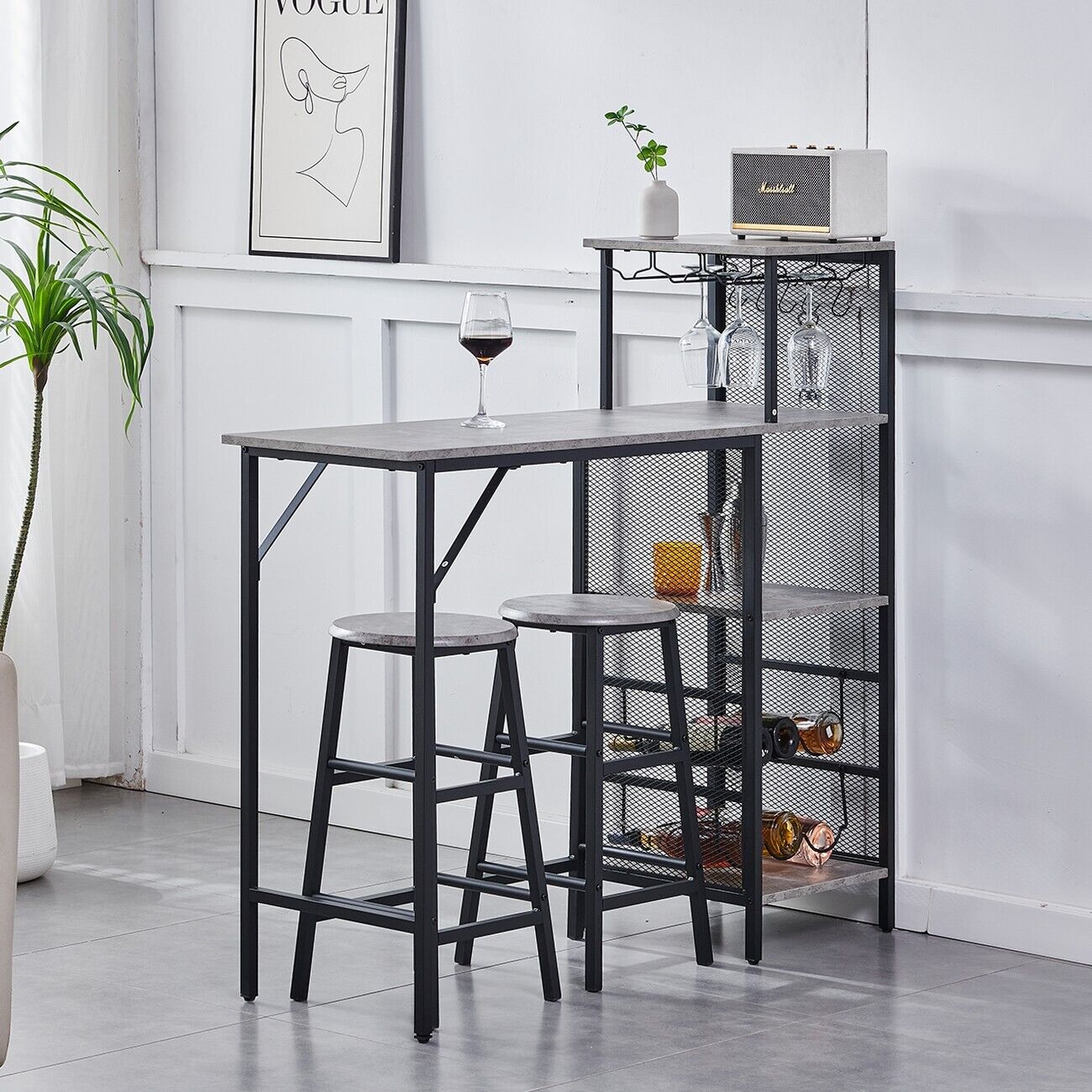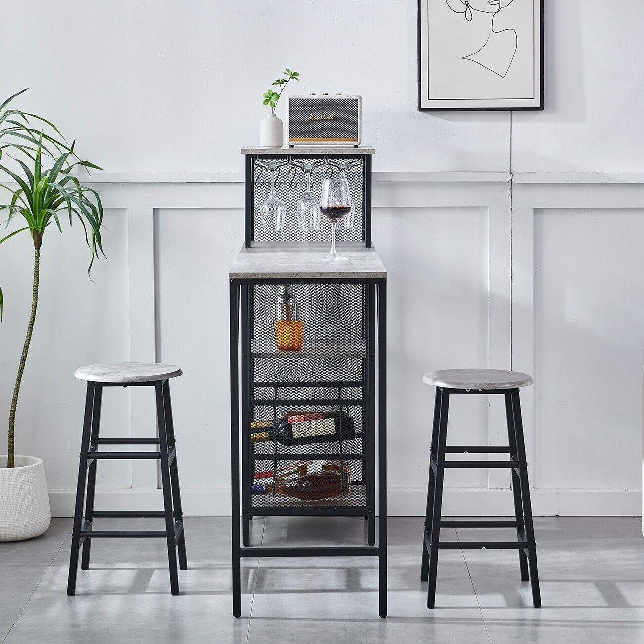 3Pcs Bar Table Stools Set 2 Bar Stools for Breakfast Pub Counter Small Apartment