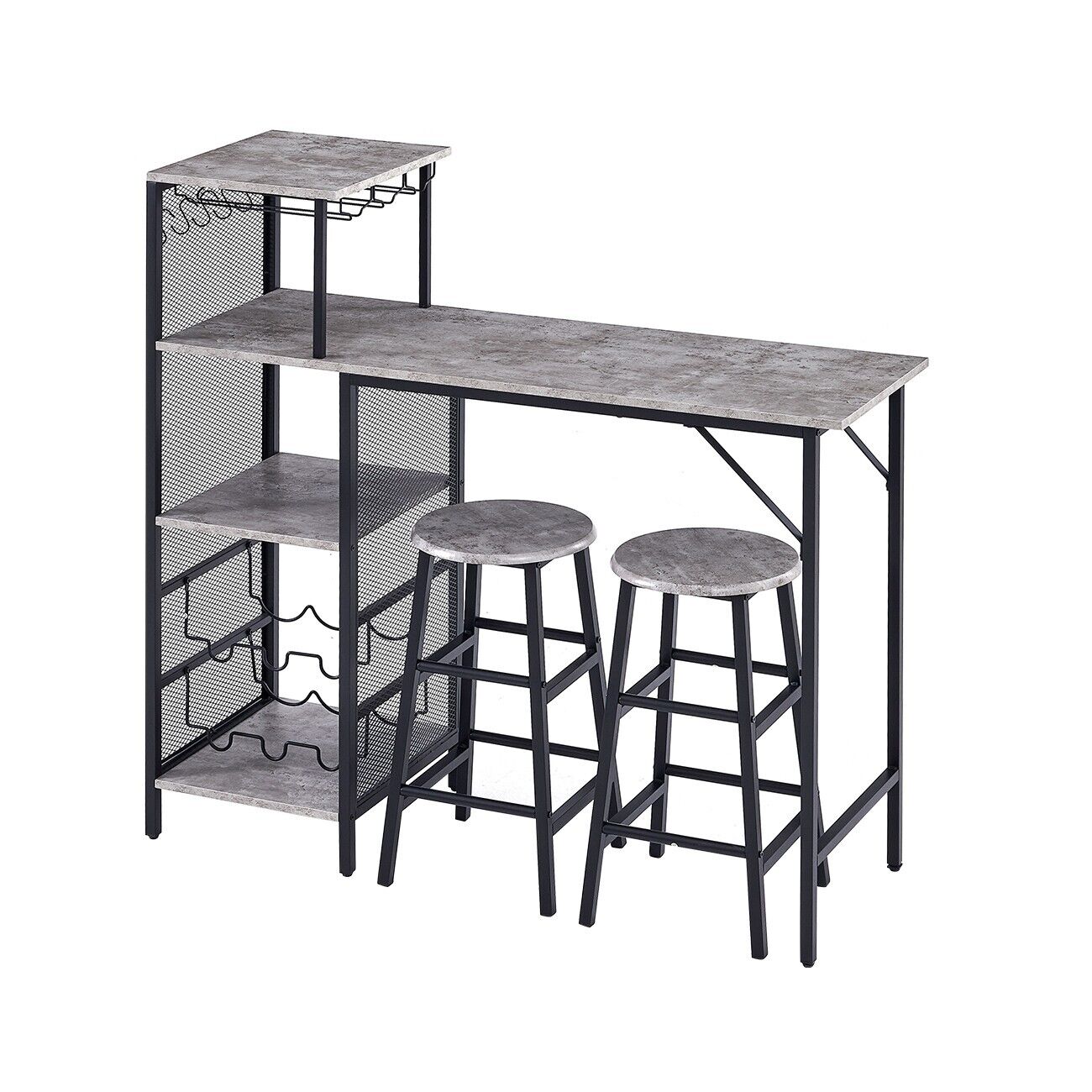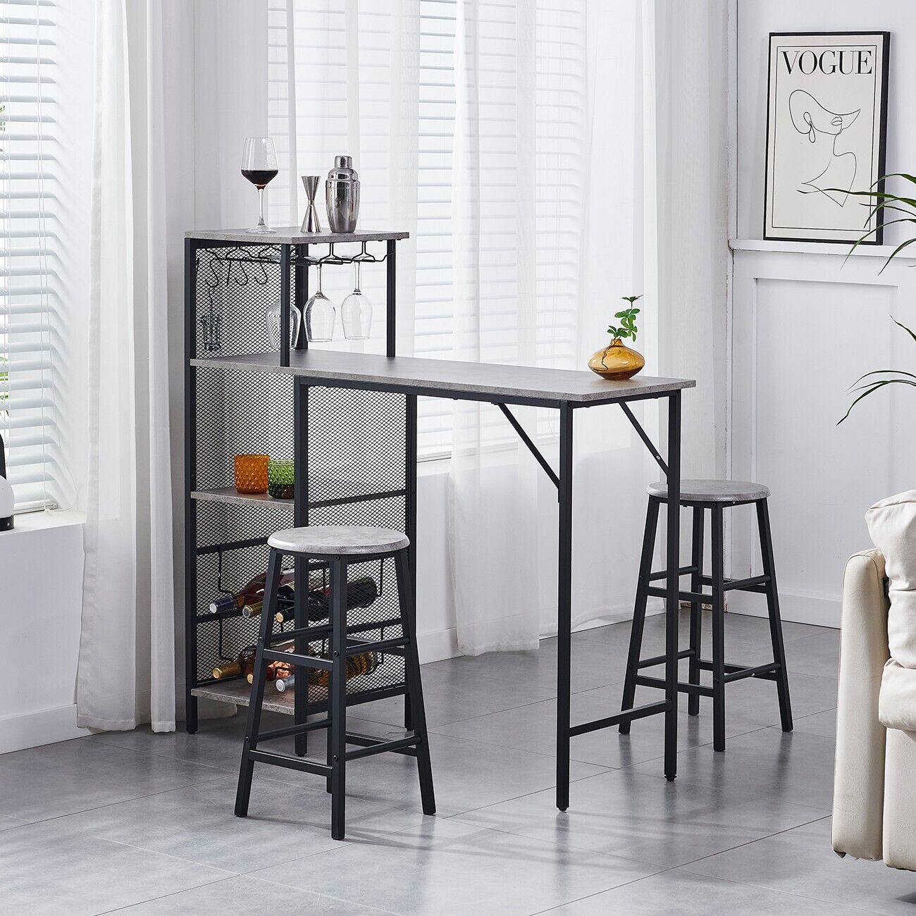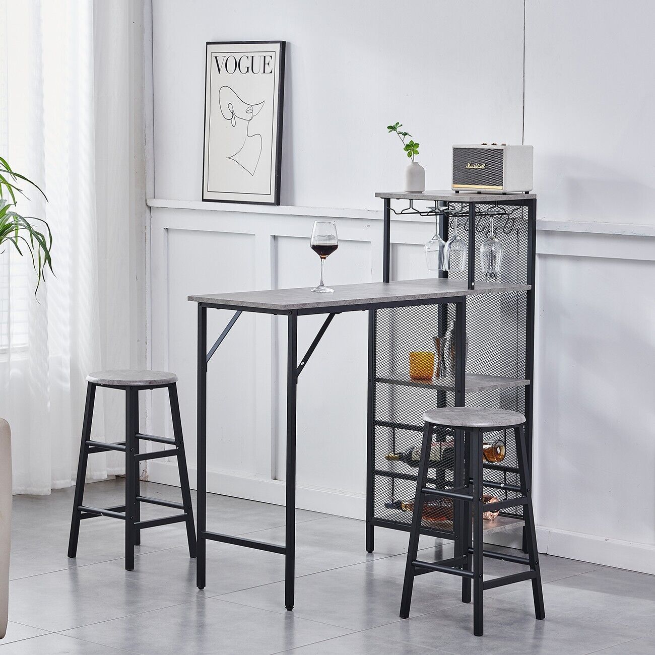 3Pcs Bar Table Stools Set 2 Bar Stools for Breakfast Pub Counter Small Apartment