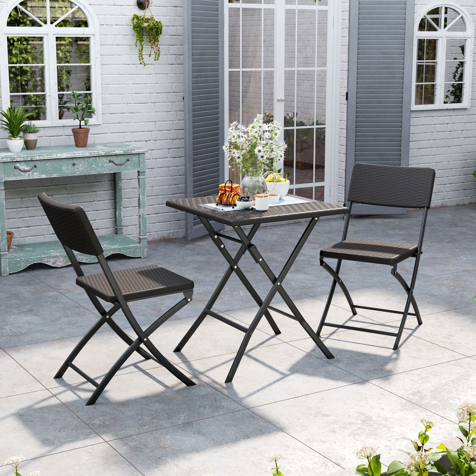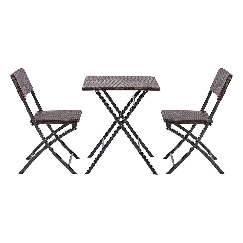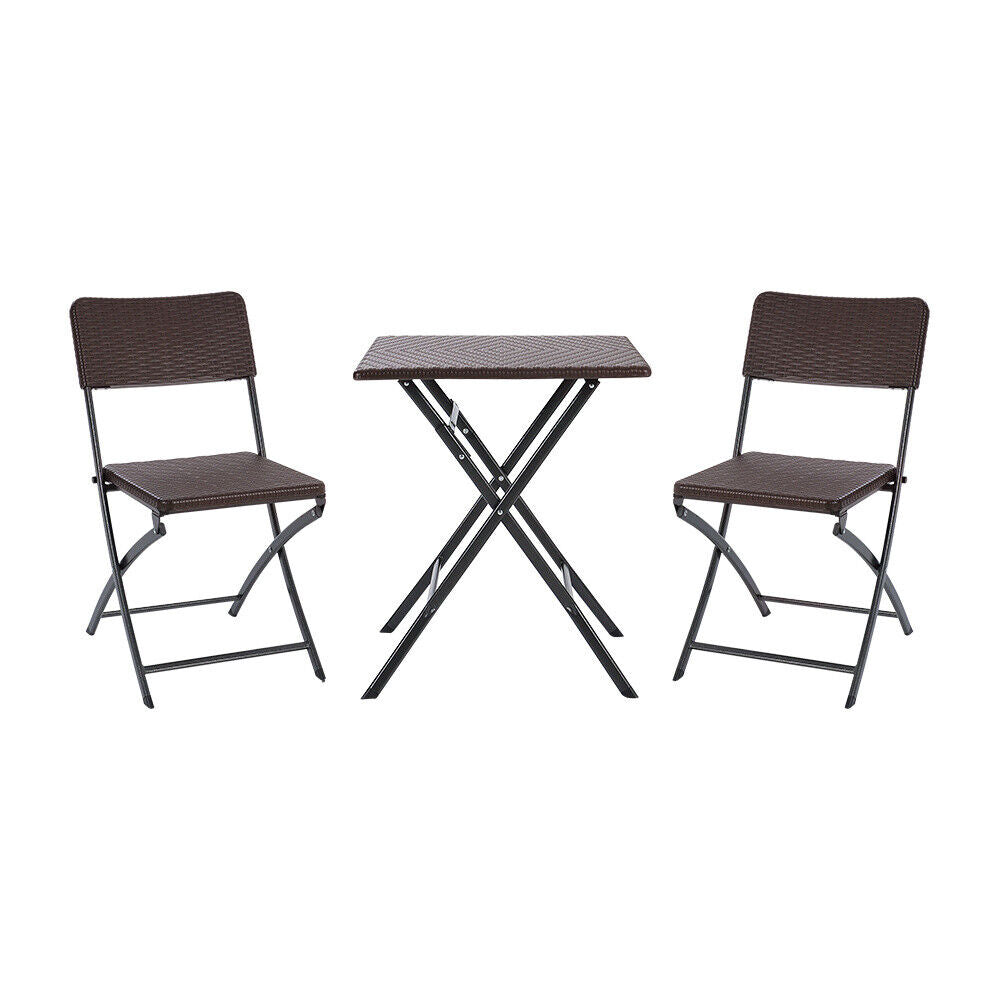 3pcs Bistro Garden Furniture Set Table & Chair Rattan Effect Patio Outdoor Brown