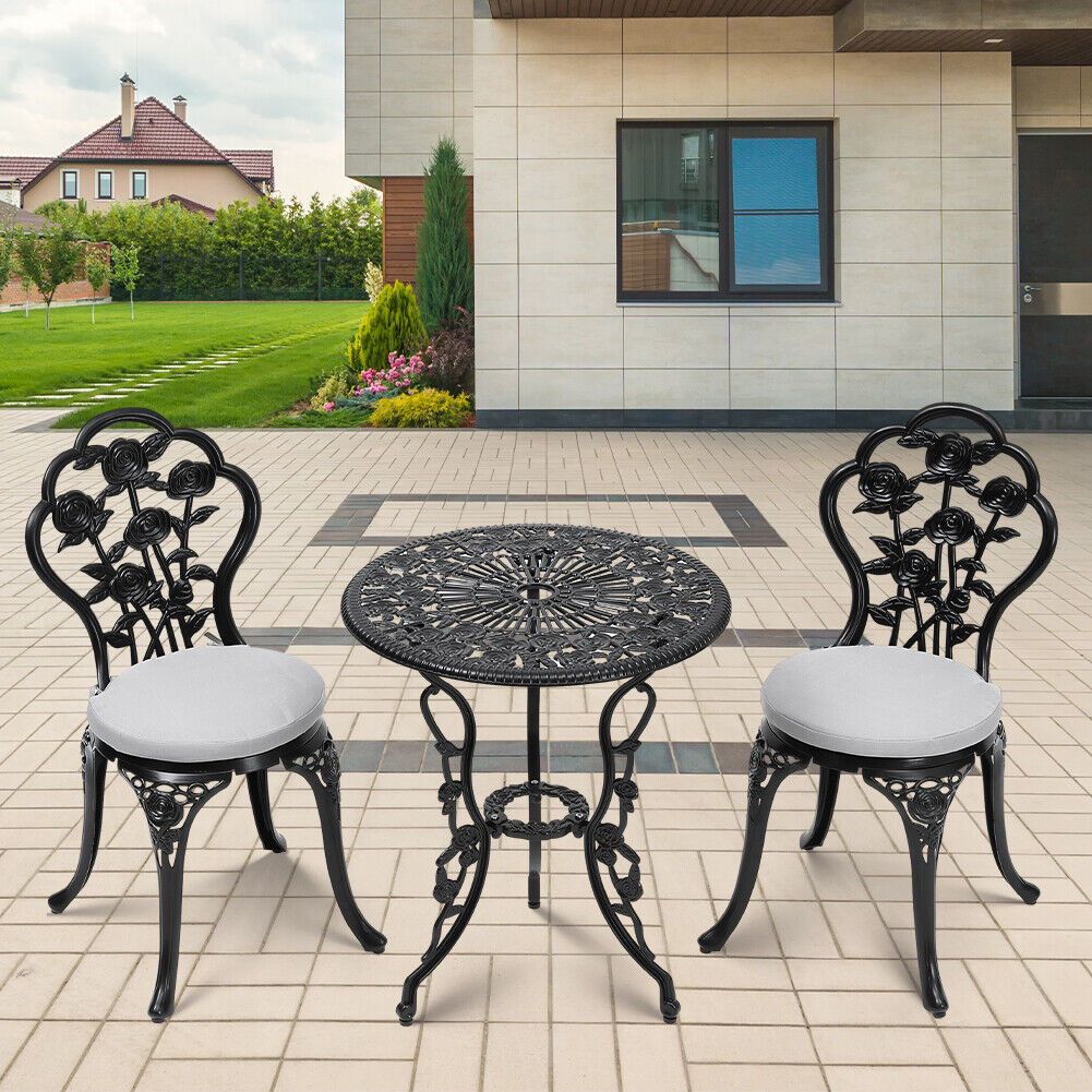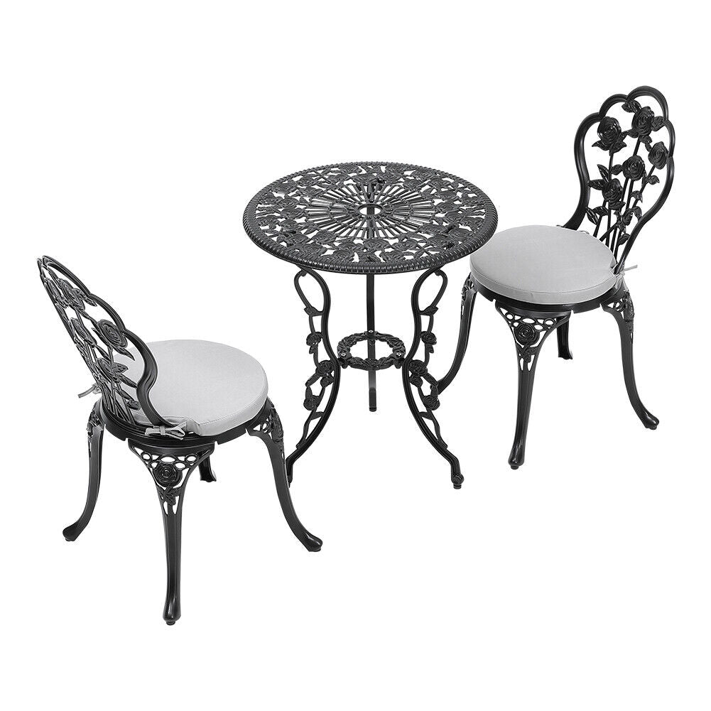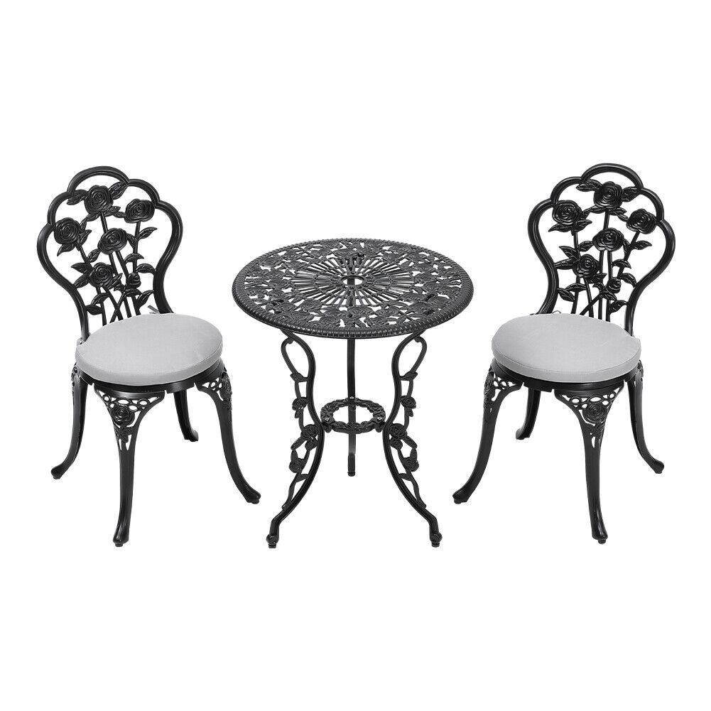 3pcs Bistro Set Cast Aluminium Outdoor Garden Patio Table &2 Chairs w/Cushions