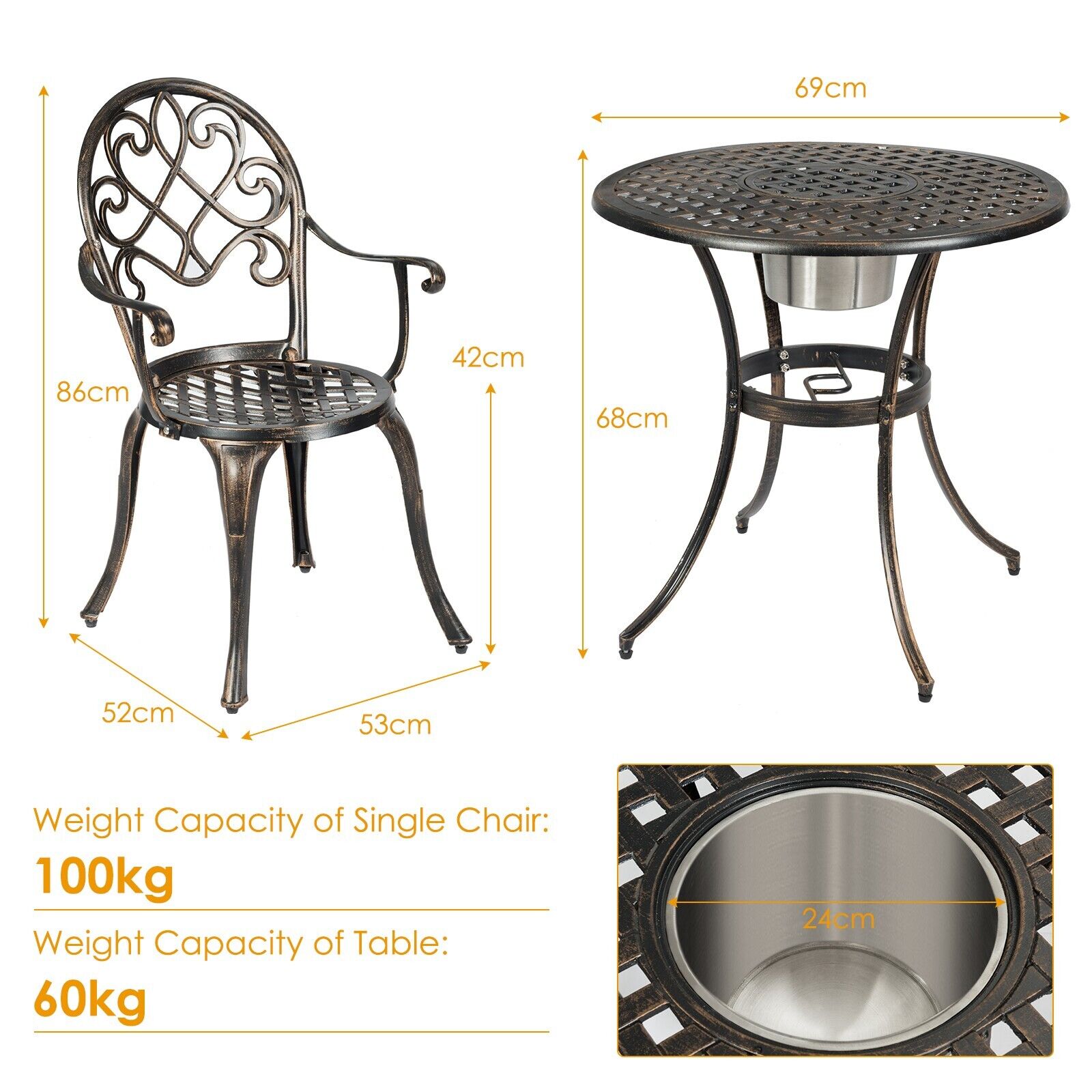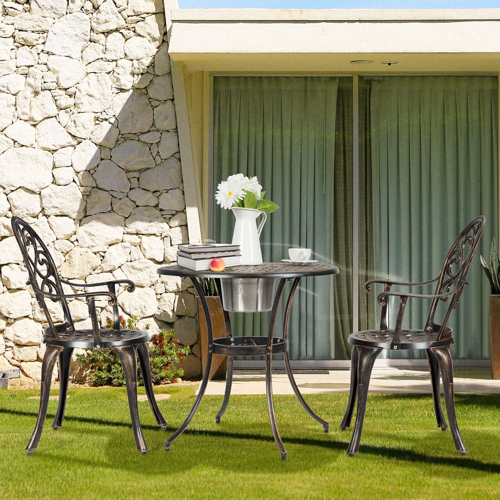 3pcs Bistro Table Set Outdoor Patio Furniture Set Round Table W/ Ice Bucket