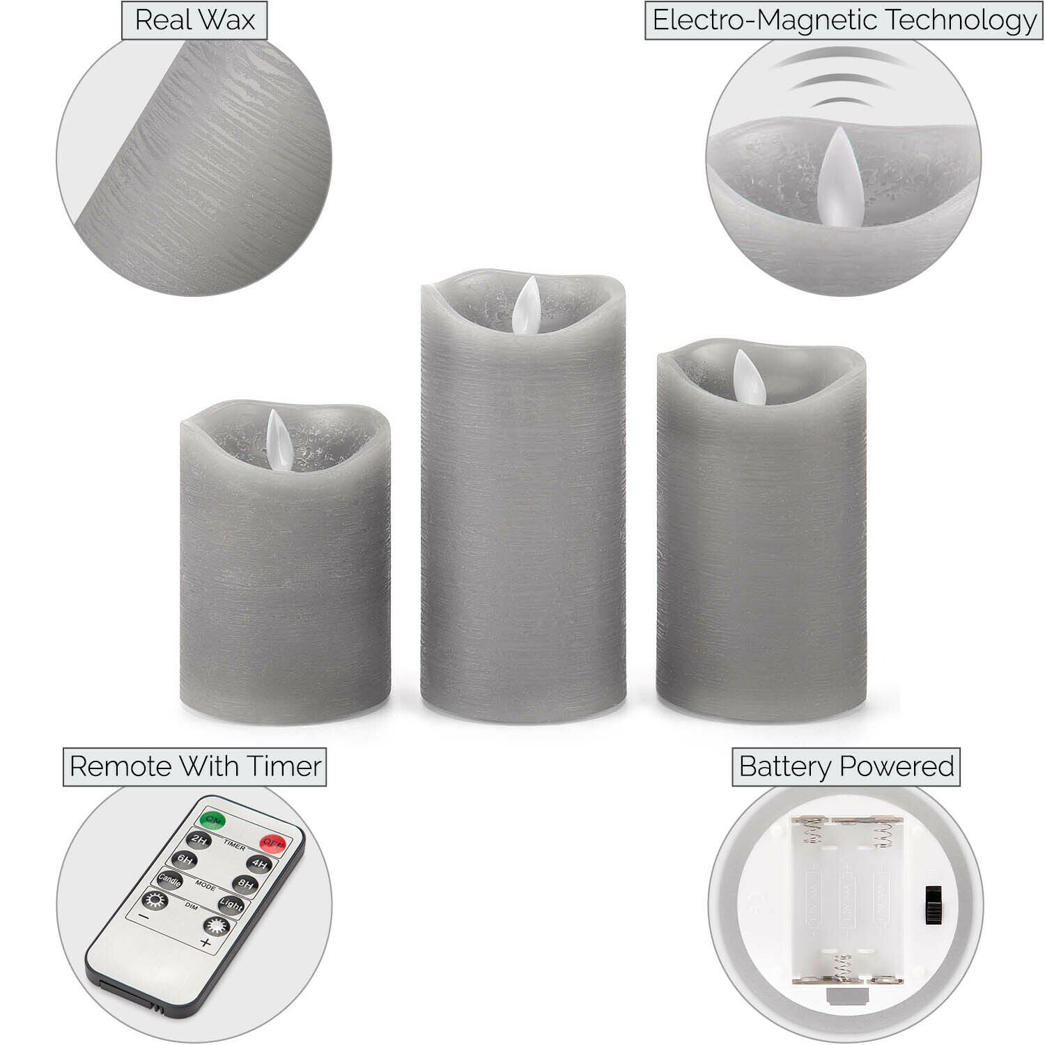 3Pcs Candle Flameless LED Real Wax Lights Candles Home Remote Control Mood Light