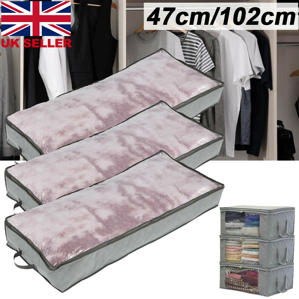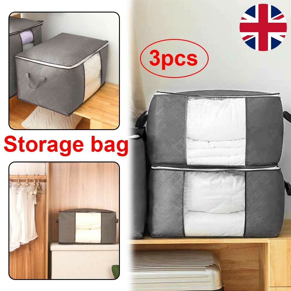 3Pcs Clothes Storage Bag Zipped Organizer Underbed Wardrobe Cube Closet Boxes UK