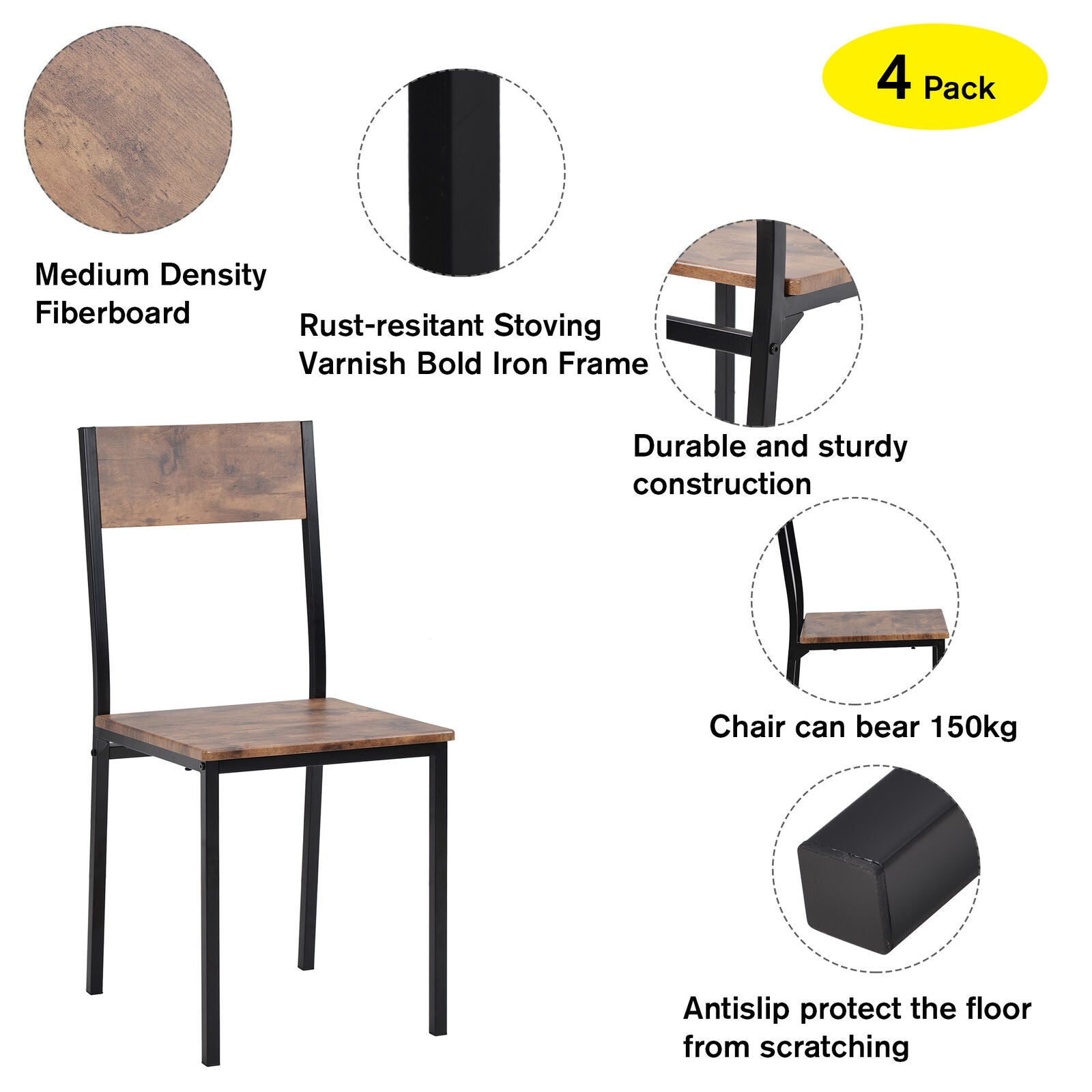 3PCS Dining Set Kitchen Dining Table and 2 Chairs Set Industrial Rustic Brown