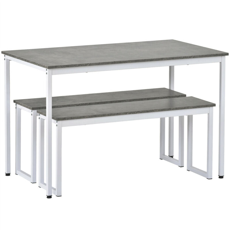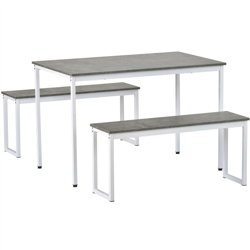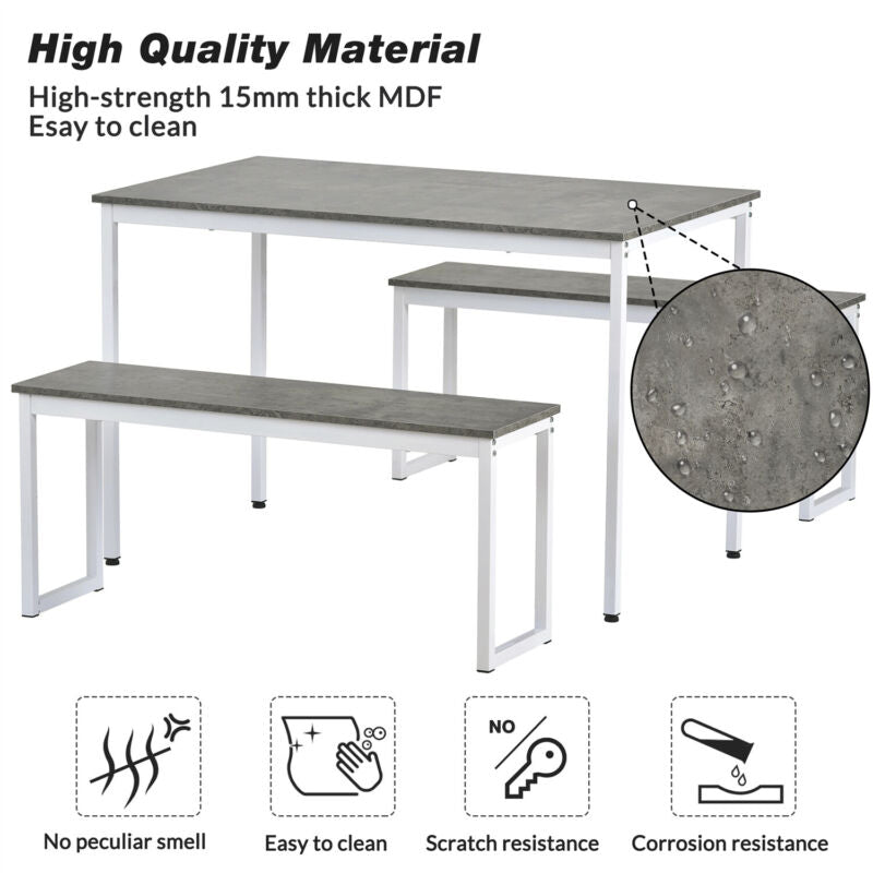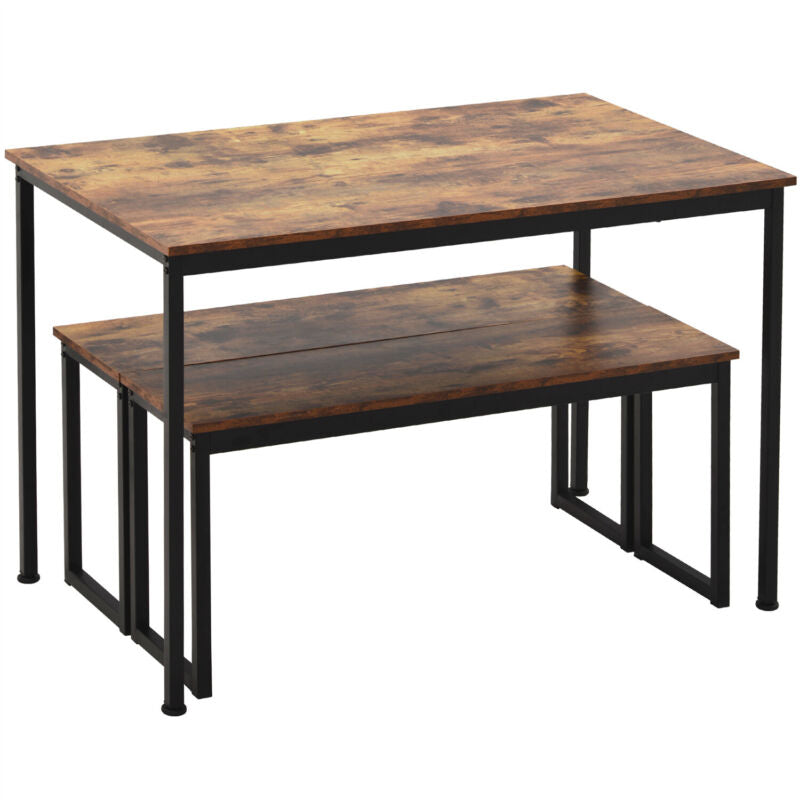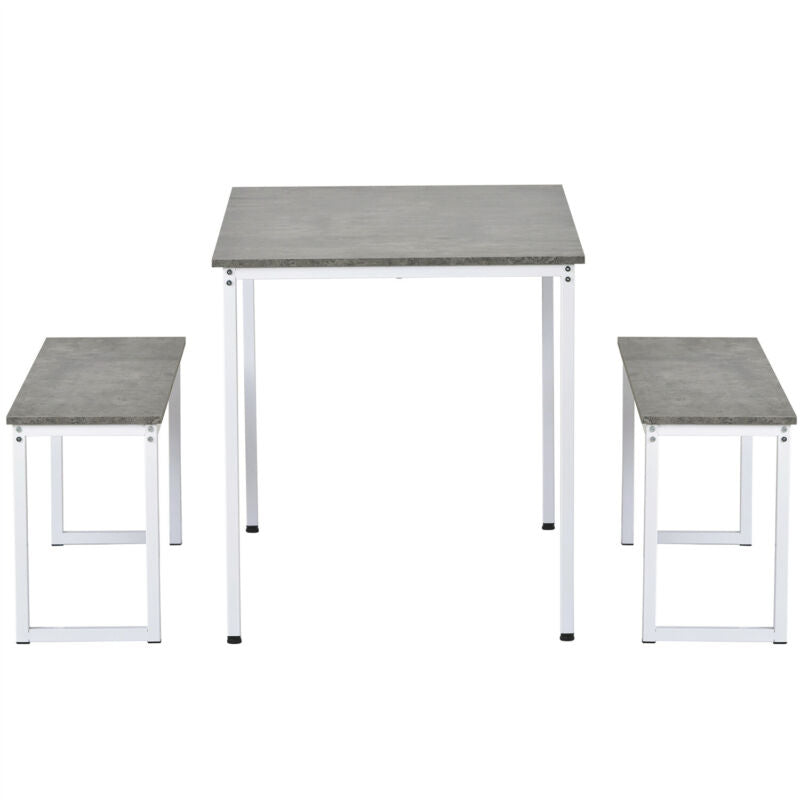 3PCS Dining Table and 2 Benches Set Kitchen Furniture Space-Saving Table Chairs