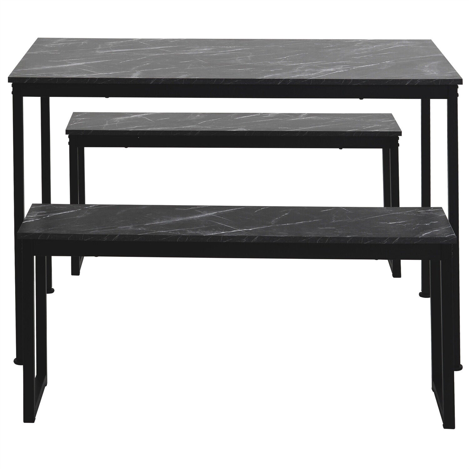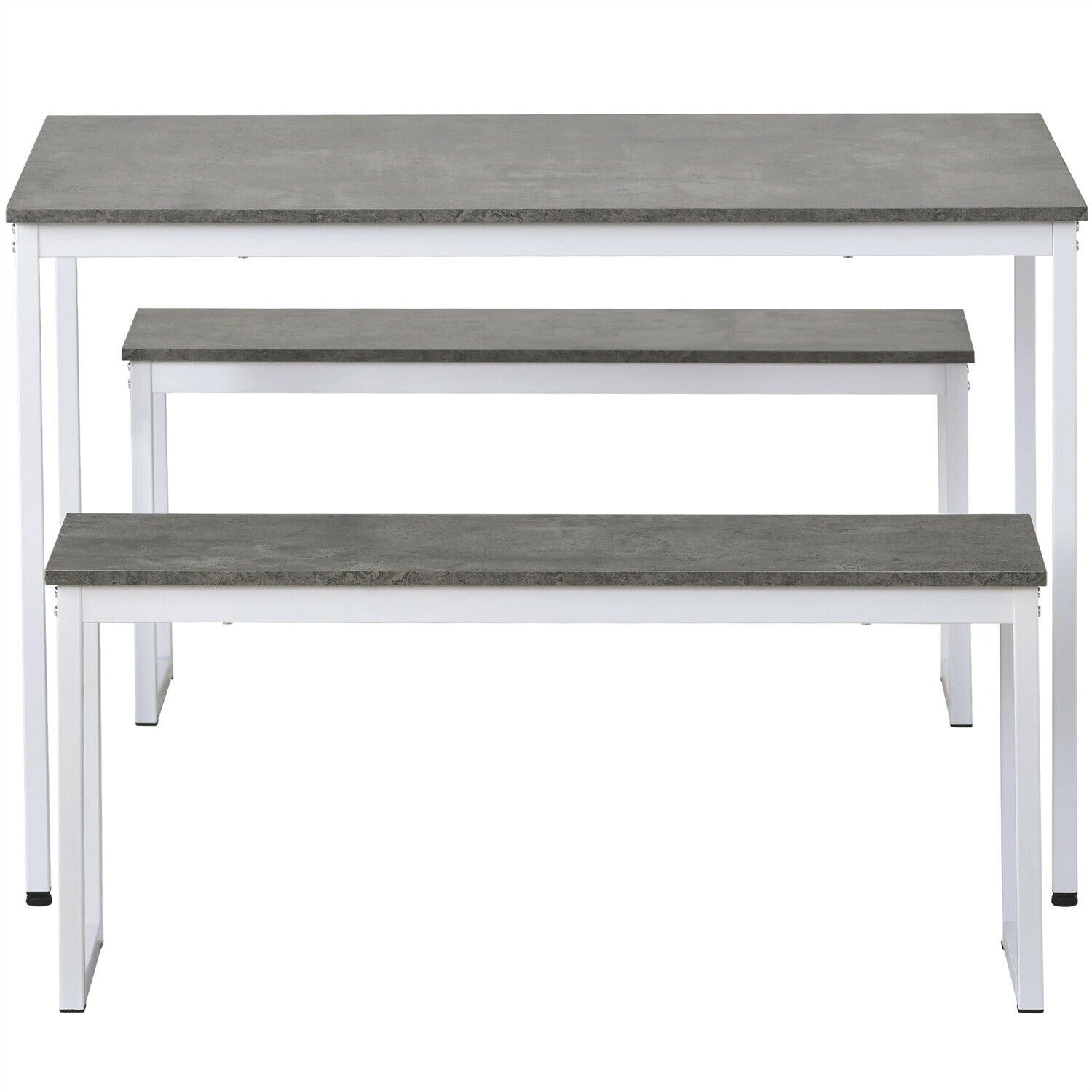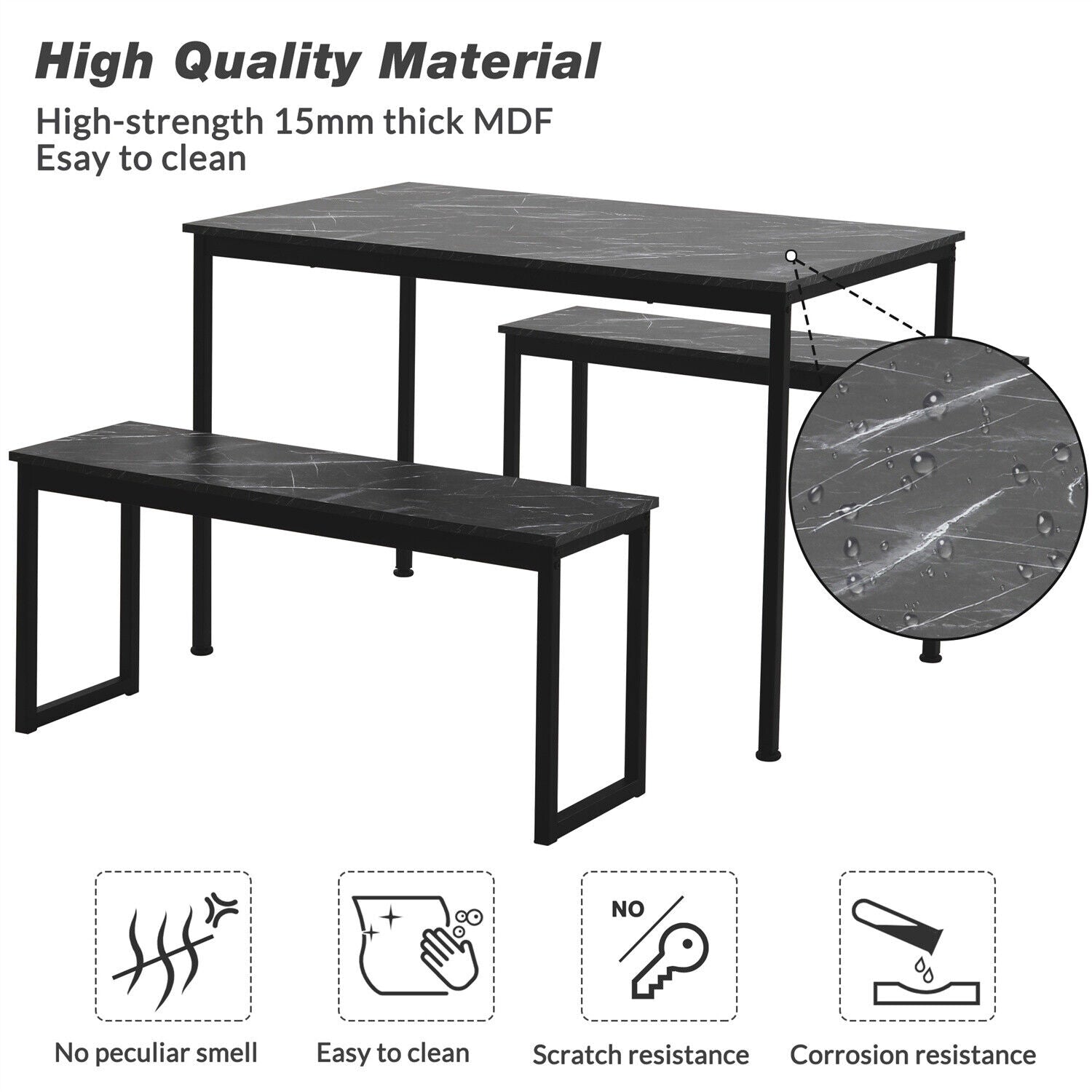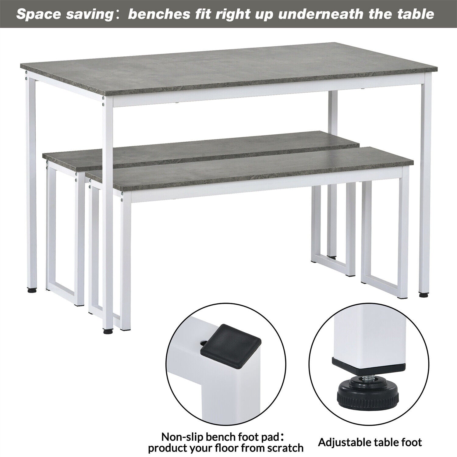 3PCS Dining Table and 2 Benches Set Kitchen Furniture Space-Saving Table Chairs