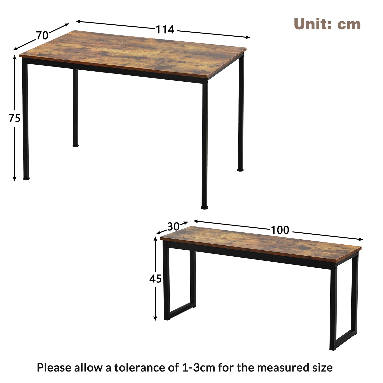 3PCS Dining Table and 2 Benches Set Space-Saving Kitchen Dining Room Furniture