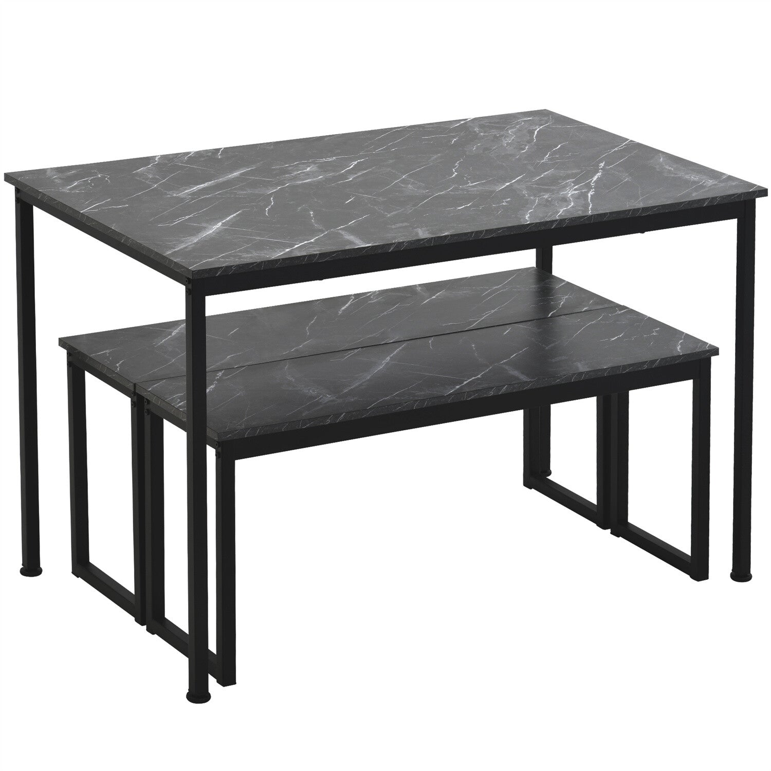 3PCS Dining Table Chairs Set 2 Benches Dining Kitchen Furniture Space-Saving