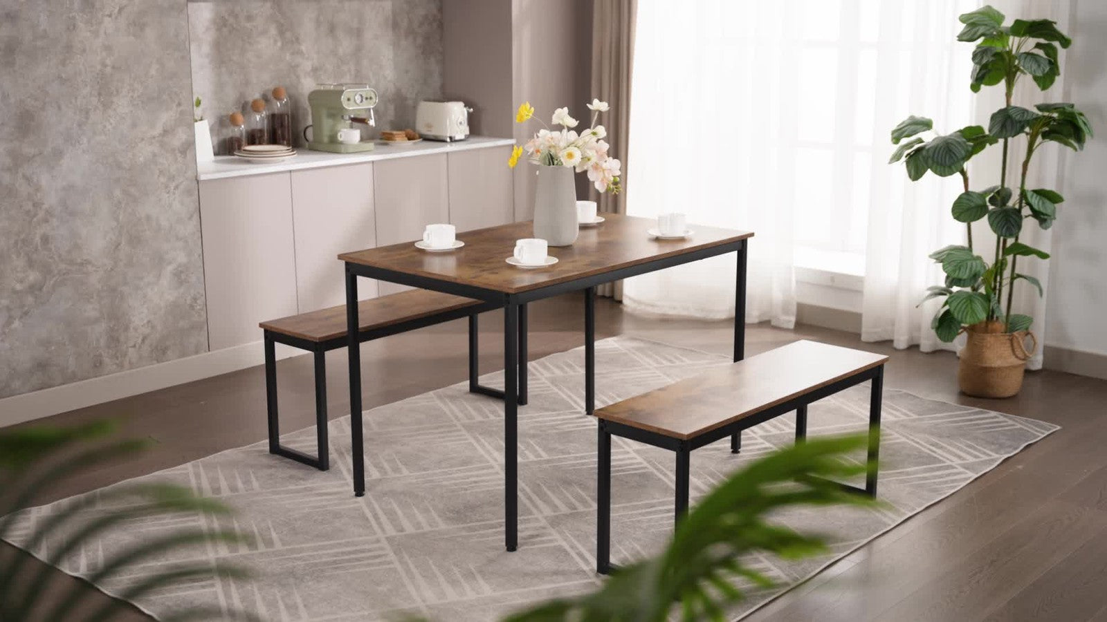 3PCS Dining Table Set Kitchen Dining Table and Chair Set Furniture Rustic Brown
