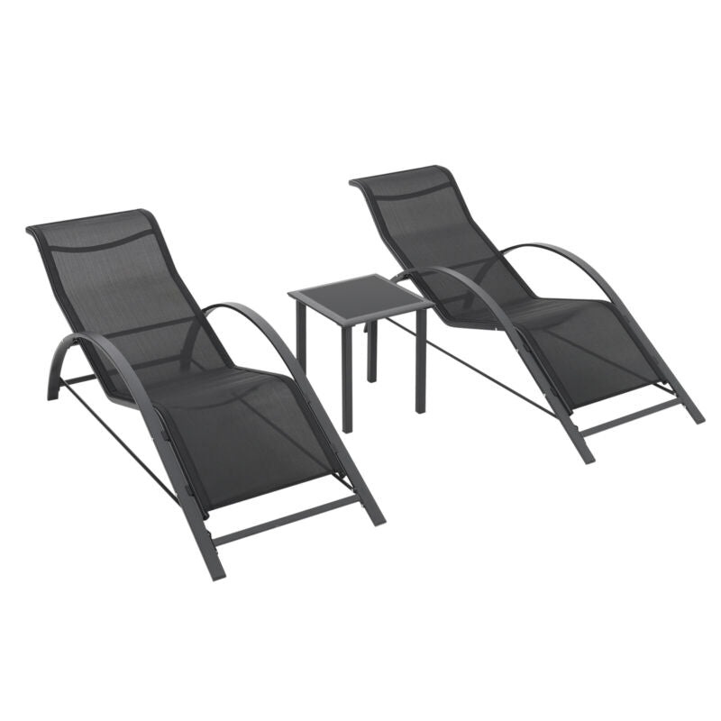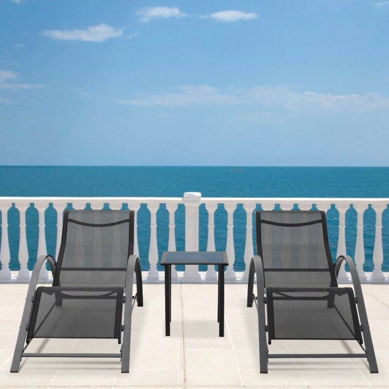 3pcs Ergonomic Sun Lounger Set Garden Poolside Recliner Deck Chair w/ Side Table