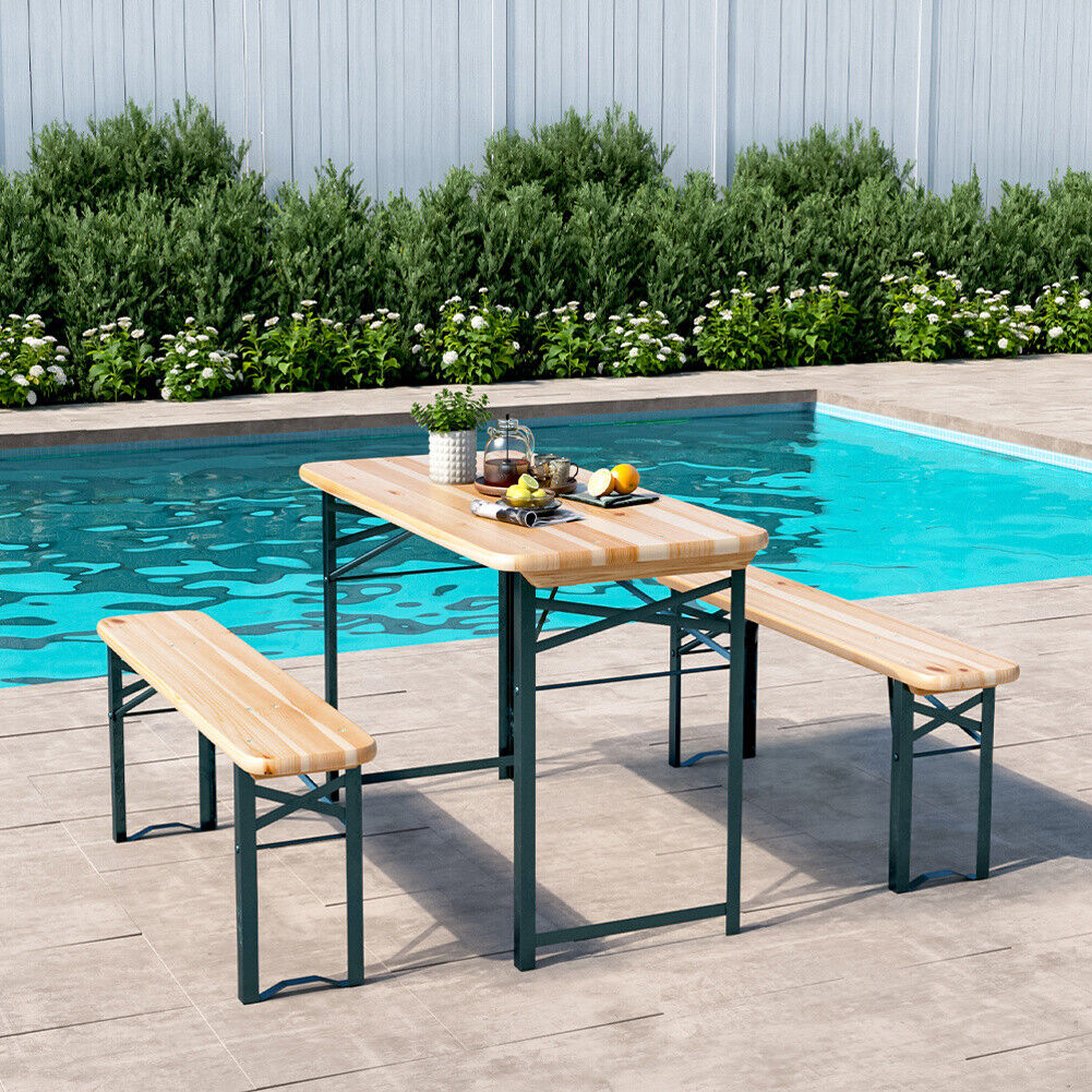 3pcs Foldable Garden Beer Table & Bench Set Outdoor Patio Seat Party Camping