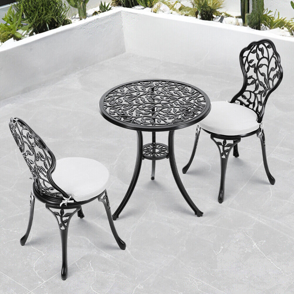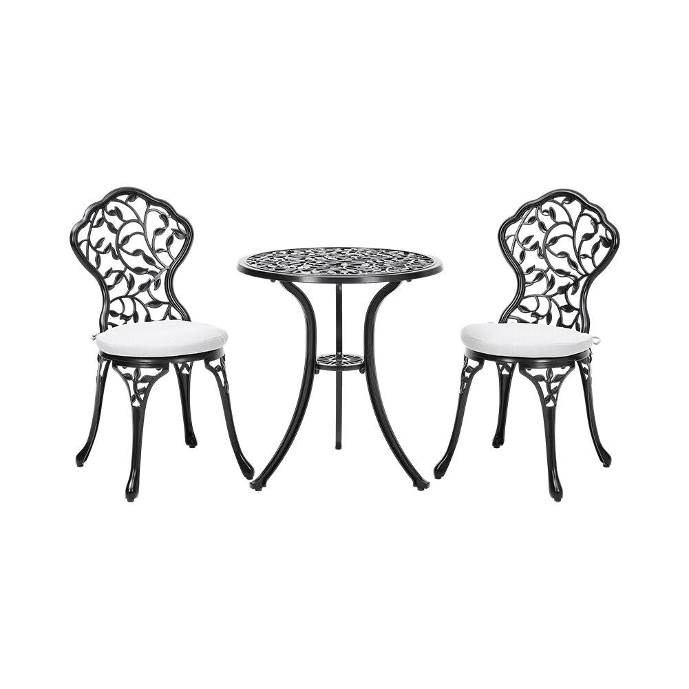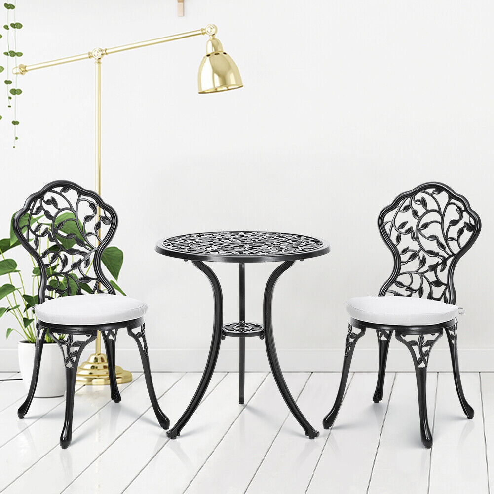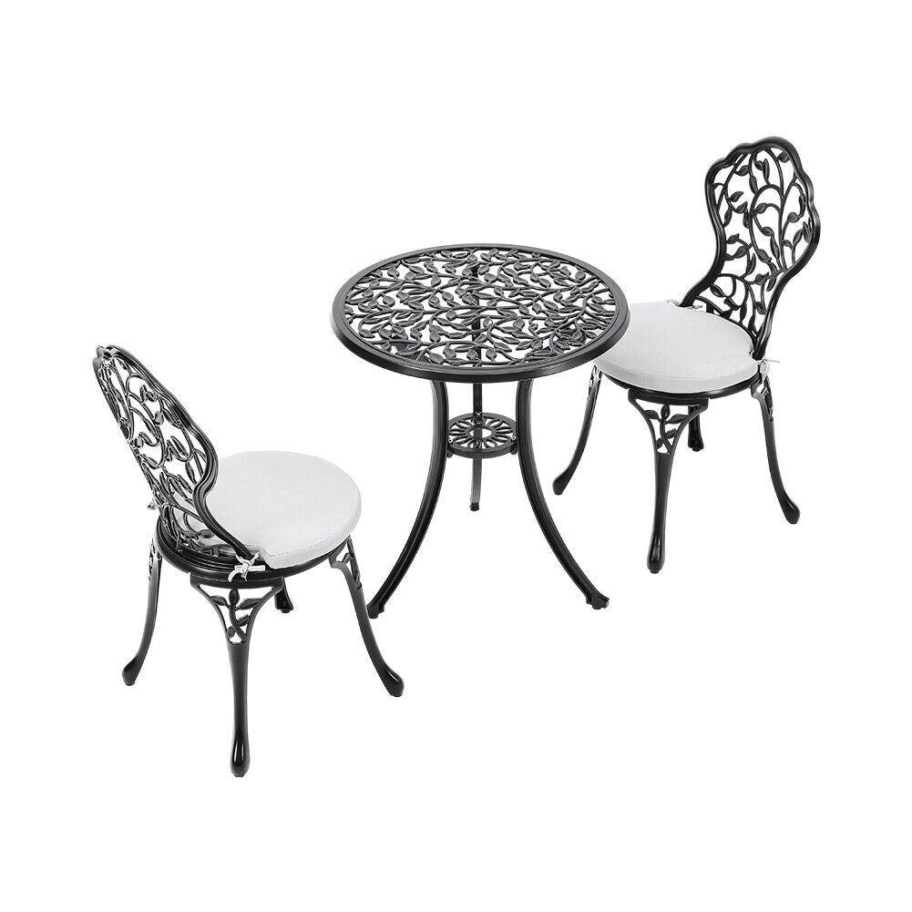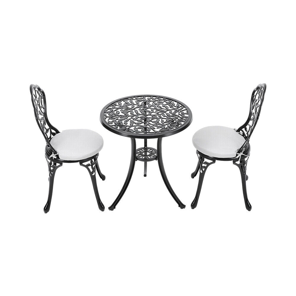 3pcs Garden Cast Aluminium Bistro Set Outdoor Coffee Table with Chairs &Cushions