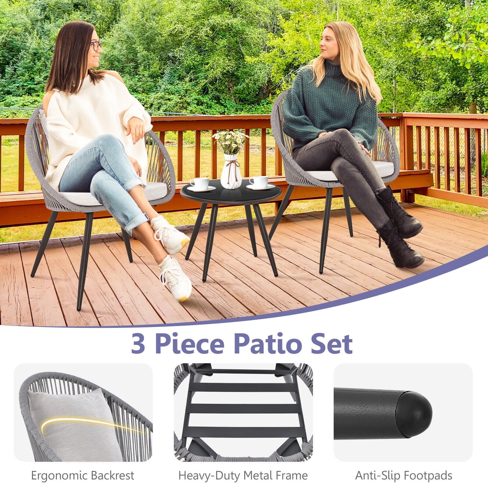 3Pcs Garden Furniture Set Modern Woven Rope Chair Set Balcony Table Chair Set