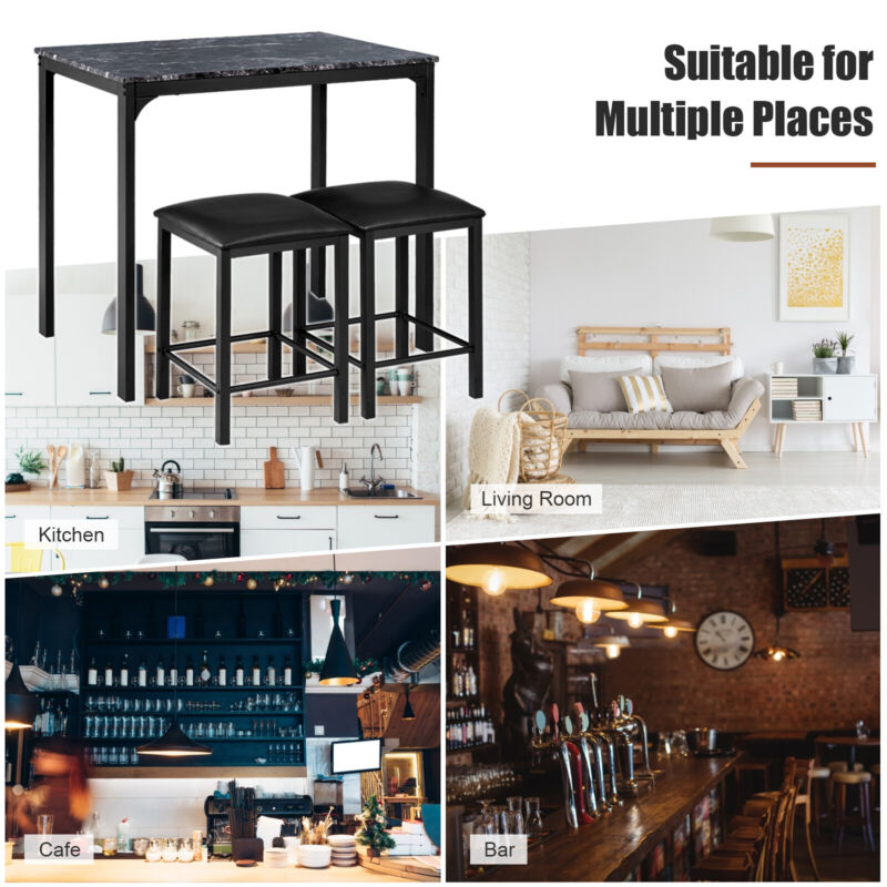 3PCS High Table & Chair Set Bar Kitchen Dining Breakfast Furniture Padded Stools