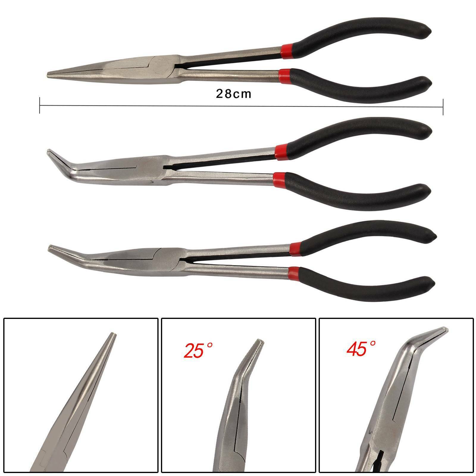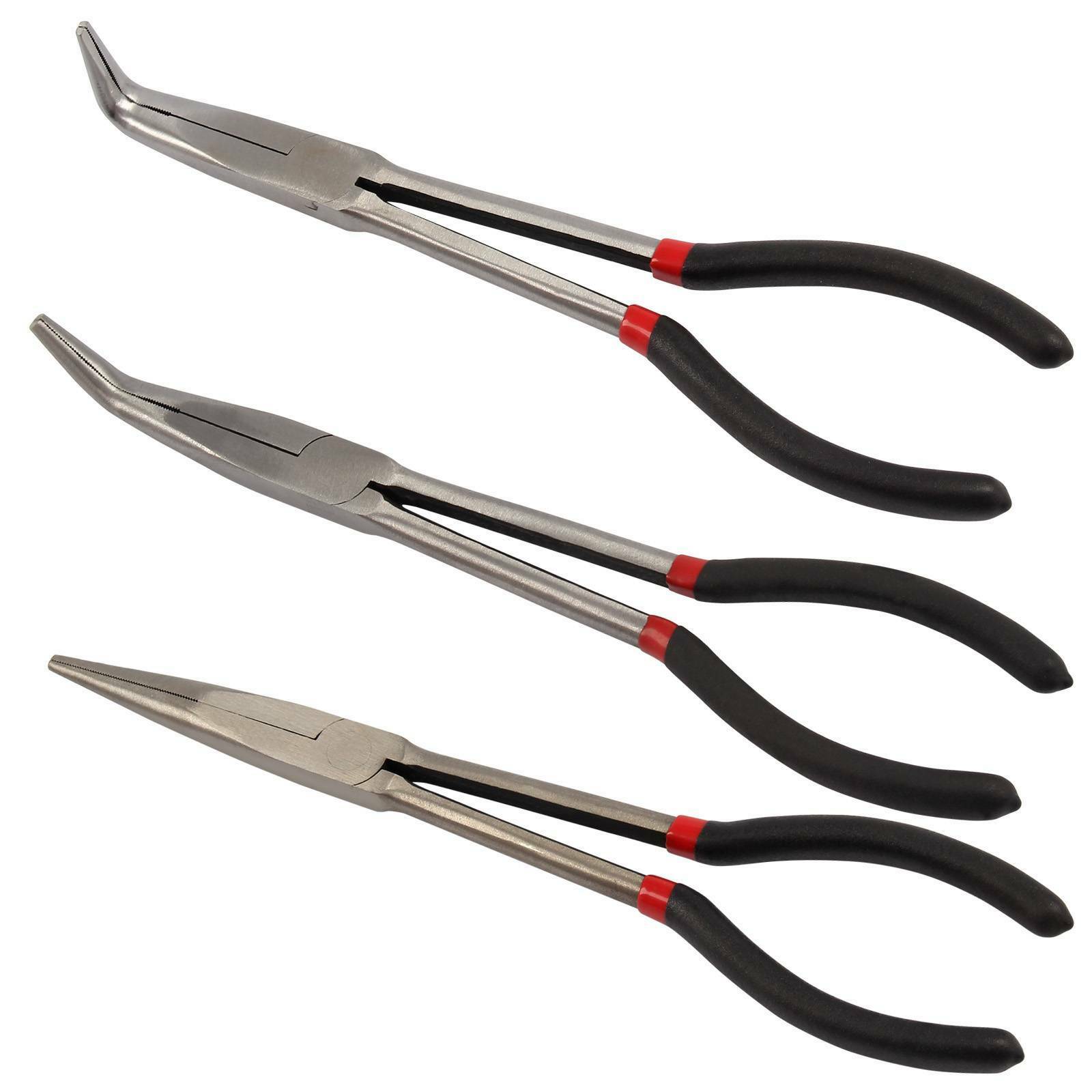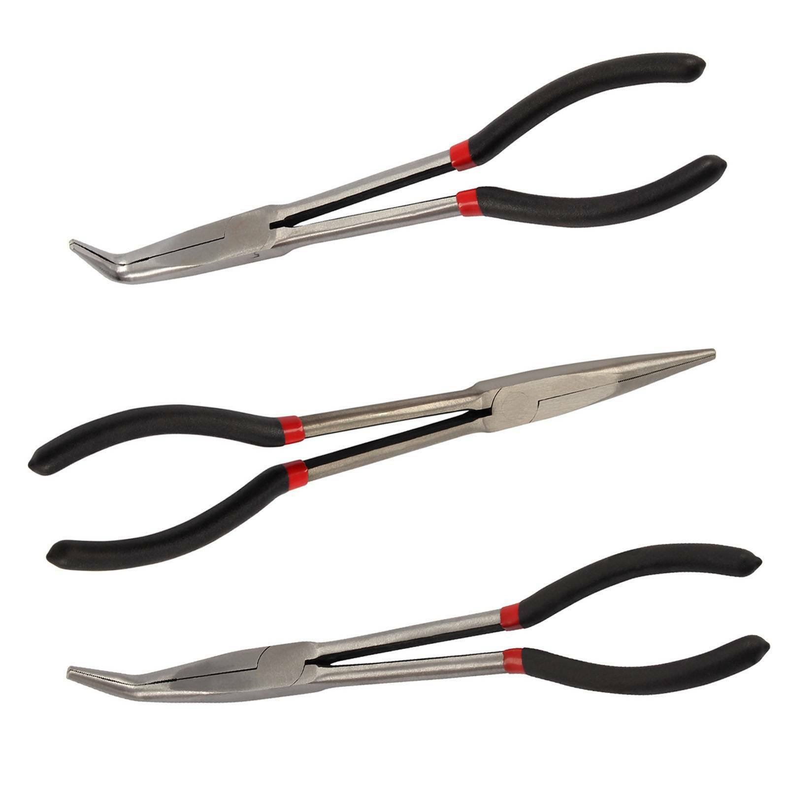 3Pcs Long Nose Pliers Set Straight Bent Tip Garage Hand Tool 11 inch 280mm UK