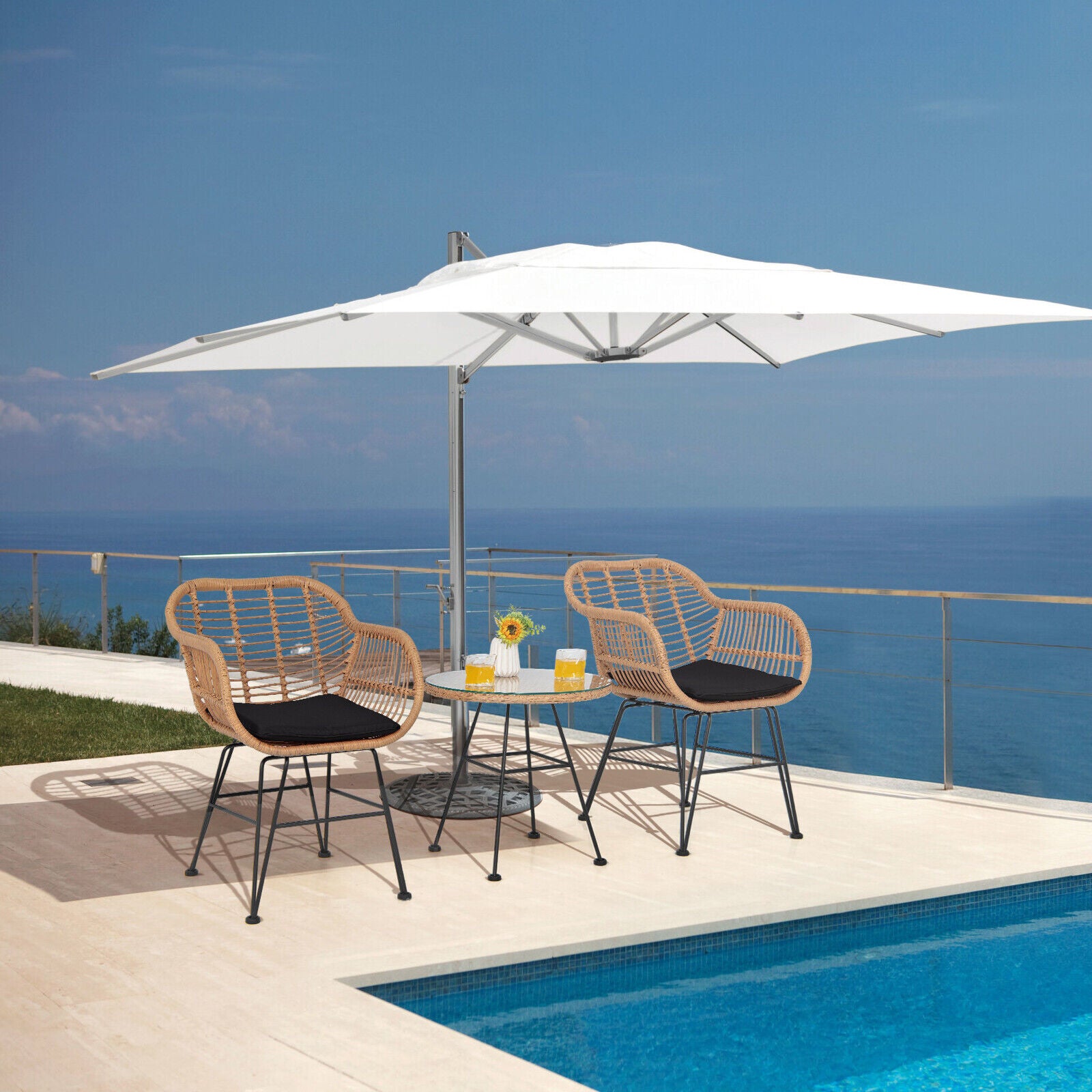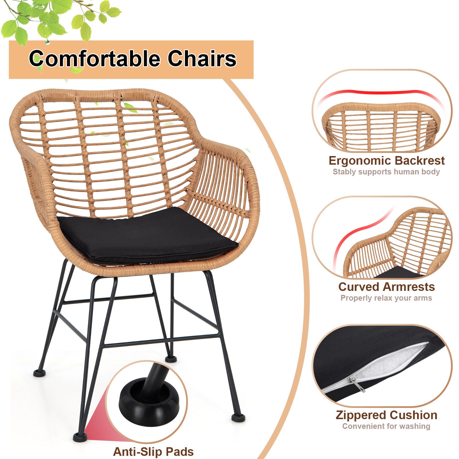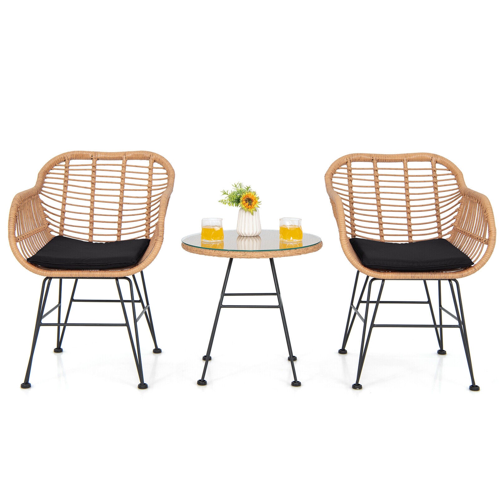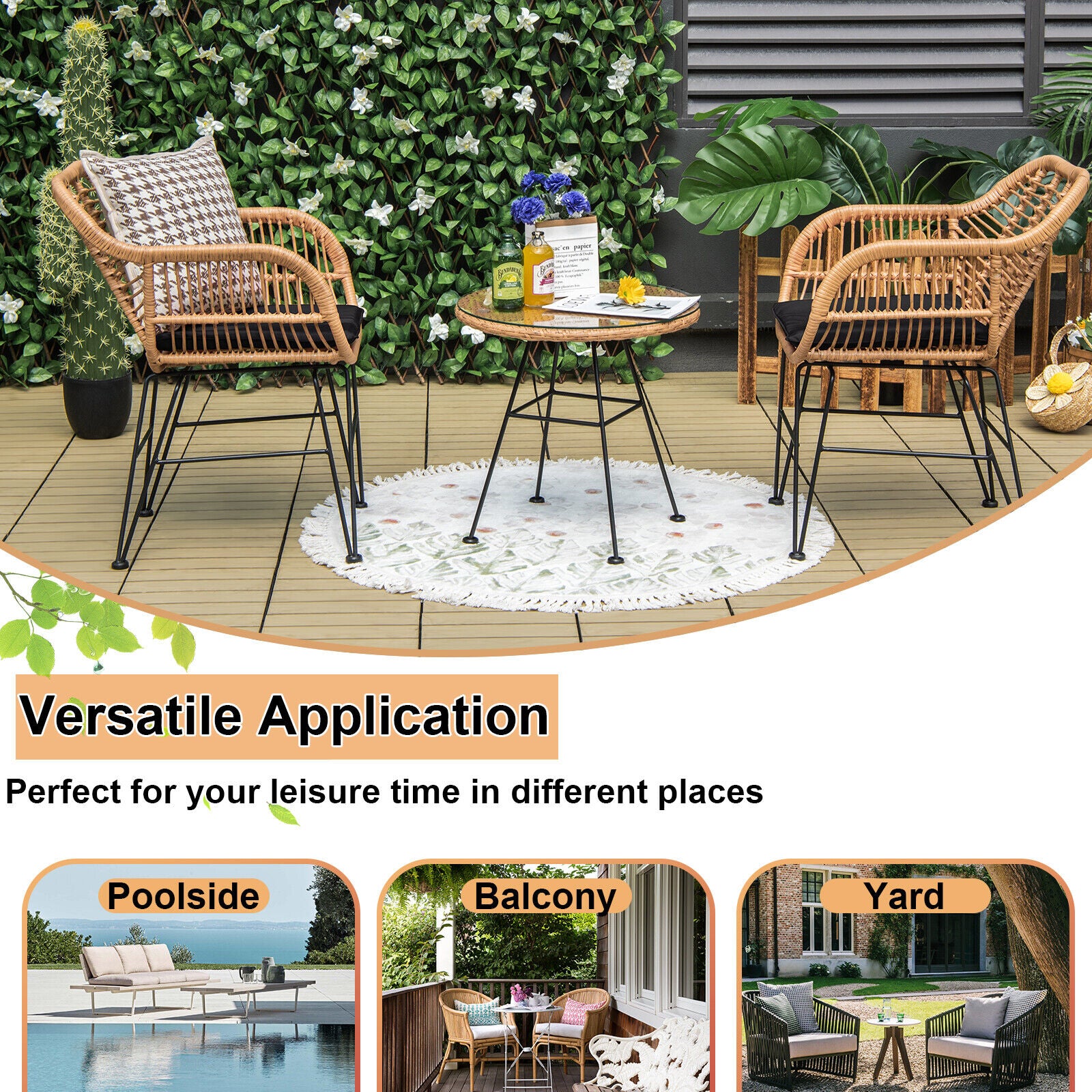 3Pcs Outdoor Garden PE Rattan Conversation Furniture Bistro Table Chairs Set