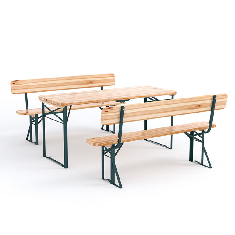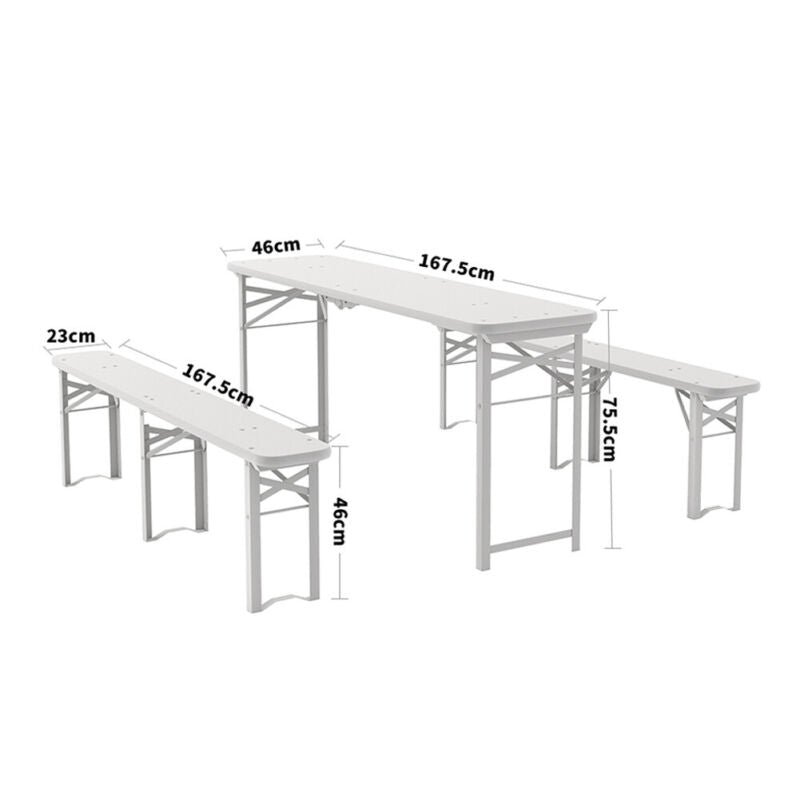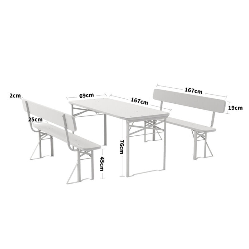 3PCS Outdoor Picnic Table Backrest Bench Portable Folding Camping Patio Beer Set
