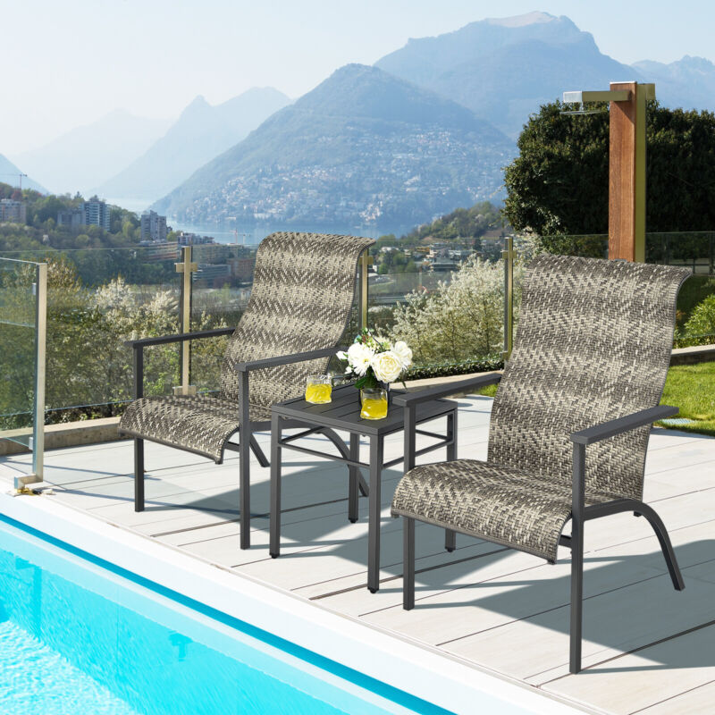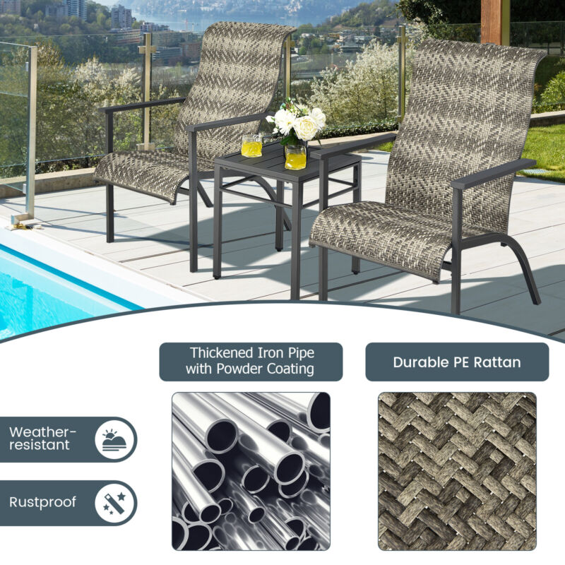 3PCS Outdoor Rattan Bistro Furniture Garden Patio Wicker Table and Chair Set