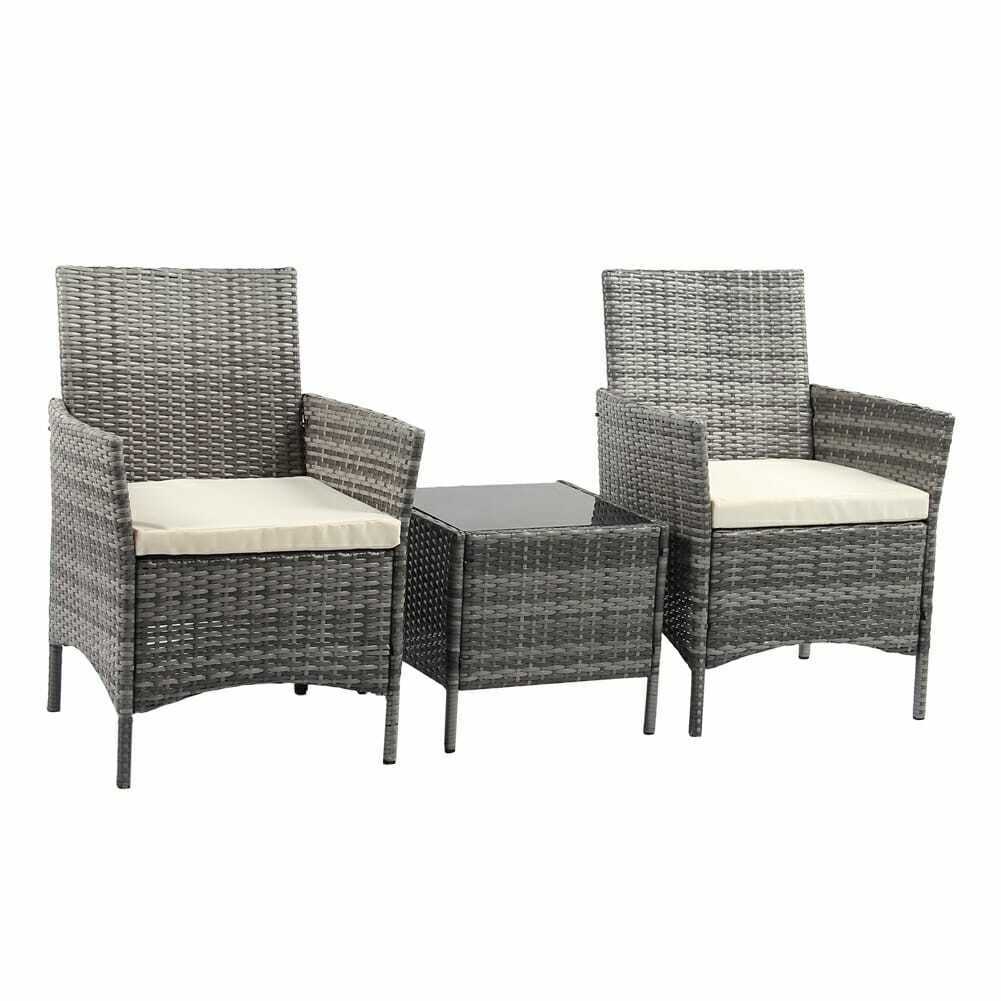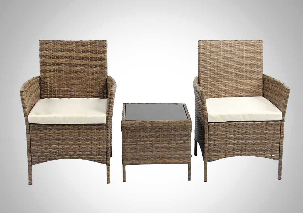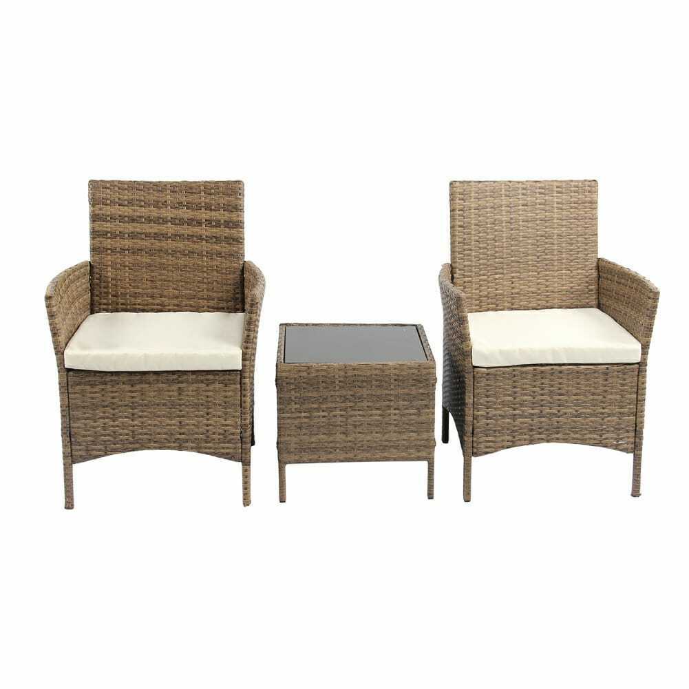 3PCS Outdoor Rattan Garden Furniture Set Coffee Table with 2 Arm chair For Patio