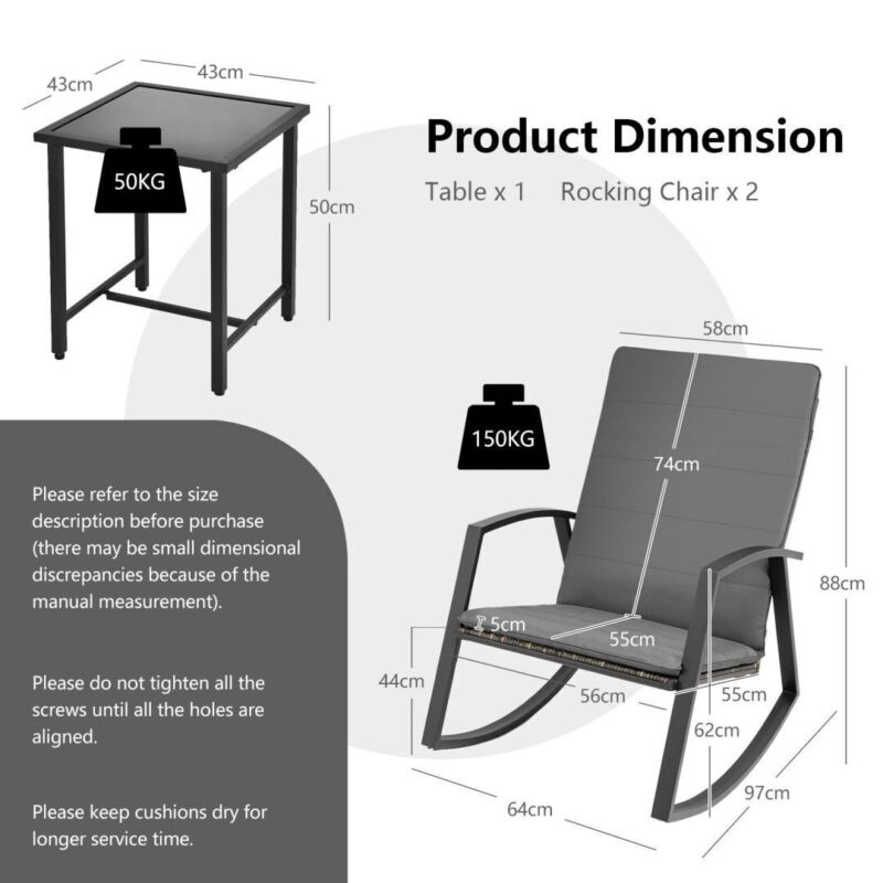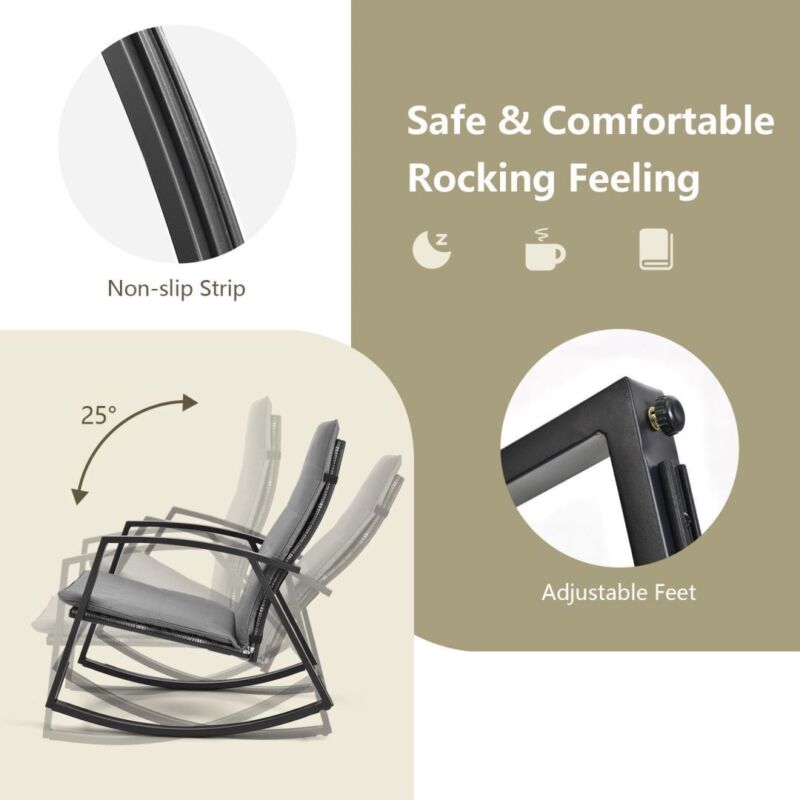 3PCS Outdoor Rattan Rocking Bistro Set Garden Patio Wicker Table & Chair Set