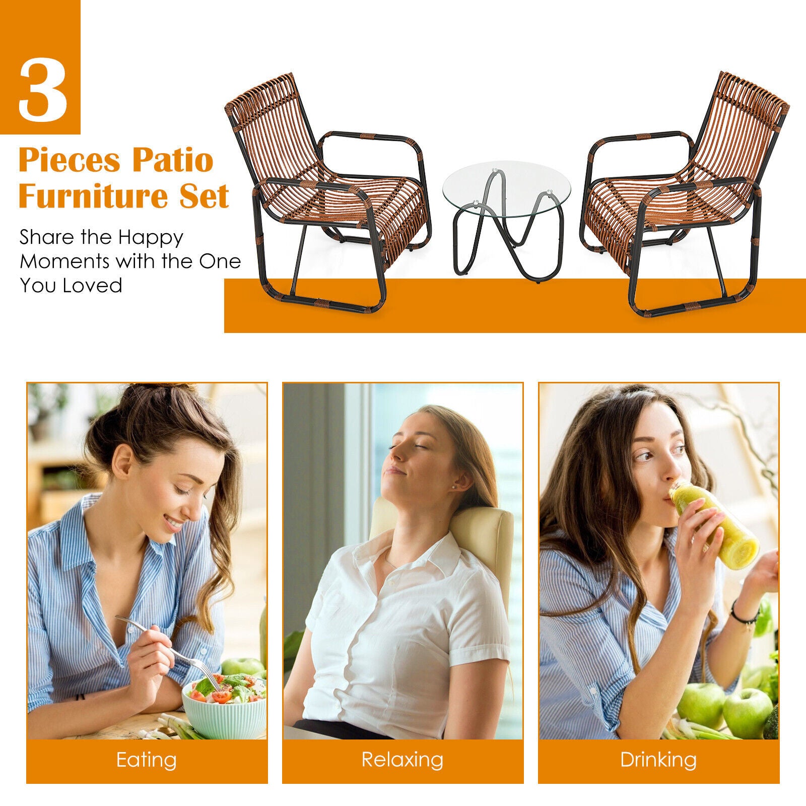 3Pcs Outdoor Rattan Sofa Set Garden Patio Furniture Set with Adjustable Feet