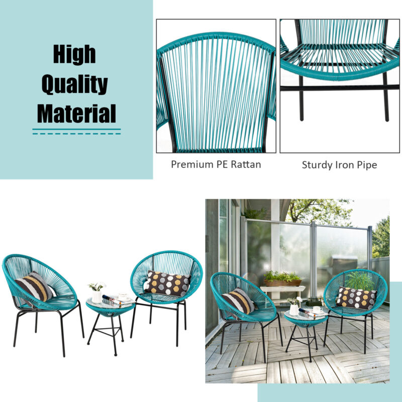 3PCS Patio Furniture Set Outdoor PE Rattan Woven Patio Chairs Set W/ Glass Table