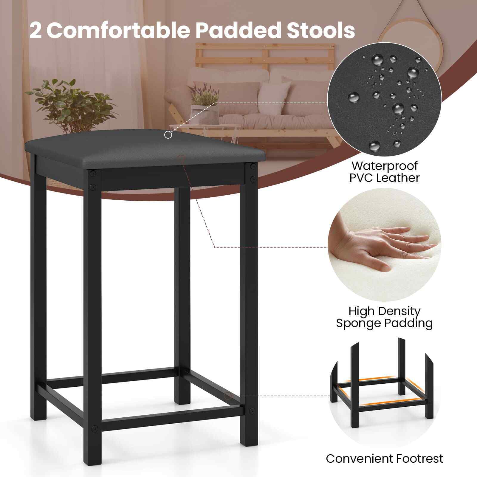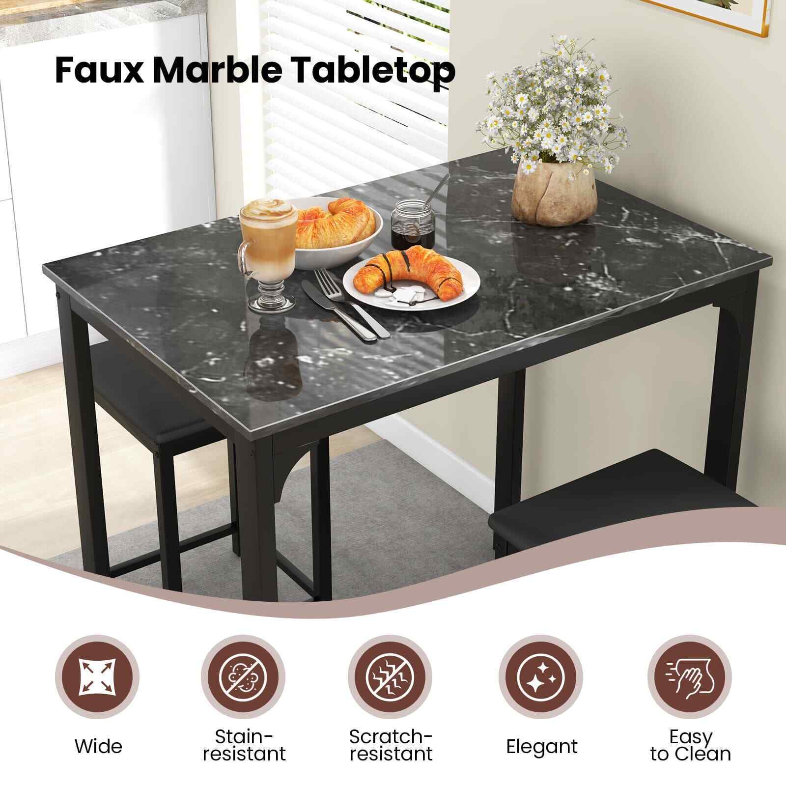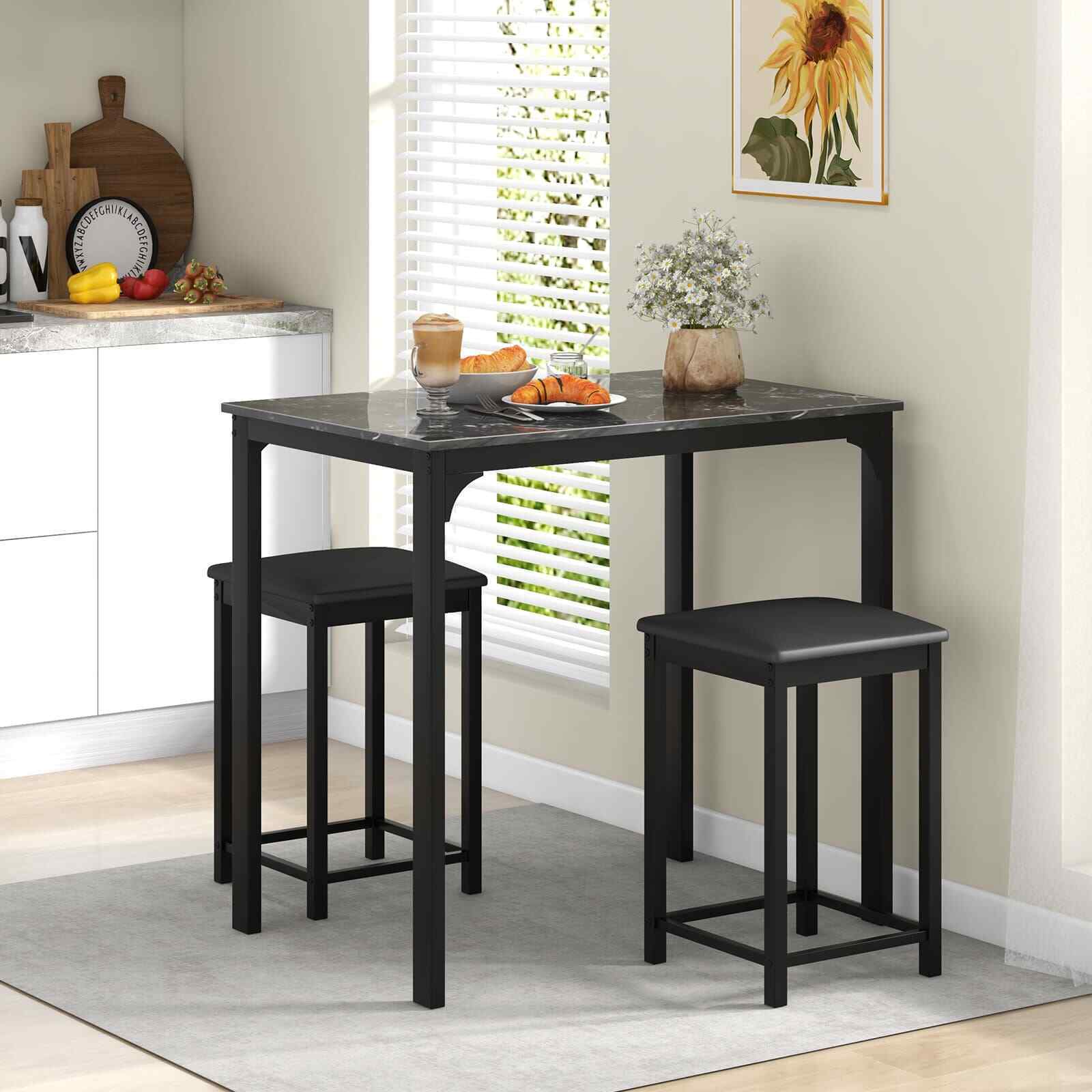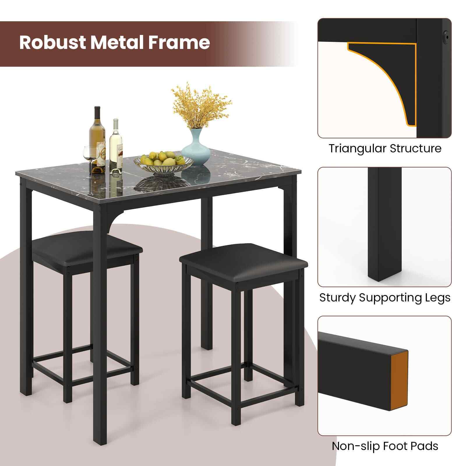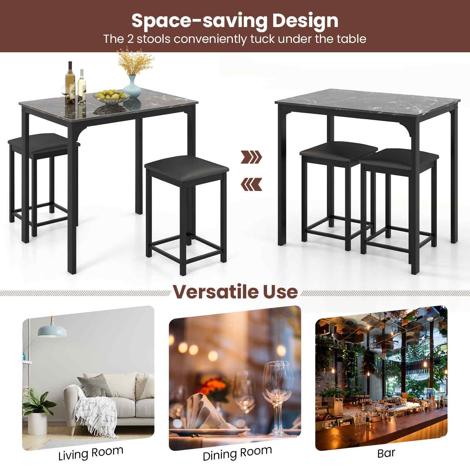 3Pcs Pub Counter-Height Dining Table Set Modern Furniture Set Black