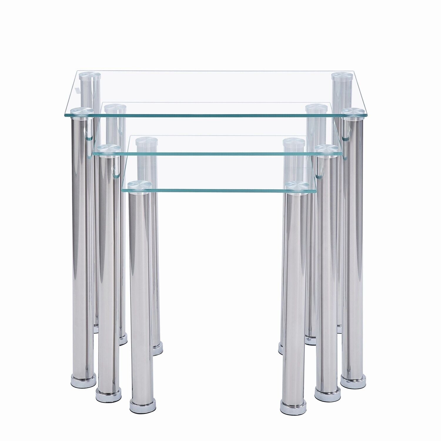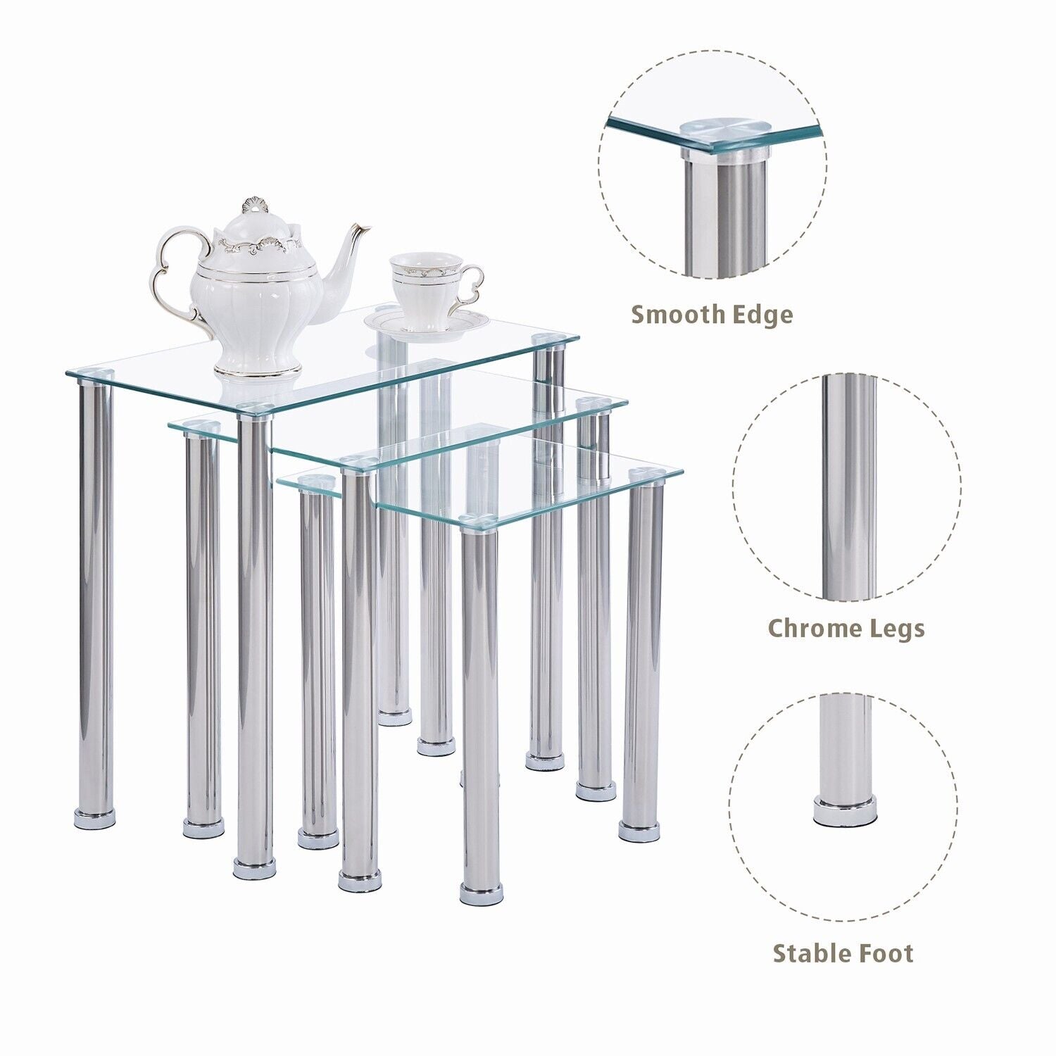 3pcs Rectangular Clear Tempered Glass Side End Nested Table Bedside Coffee Table
